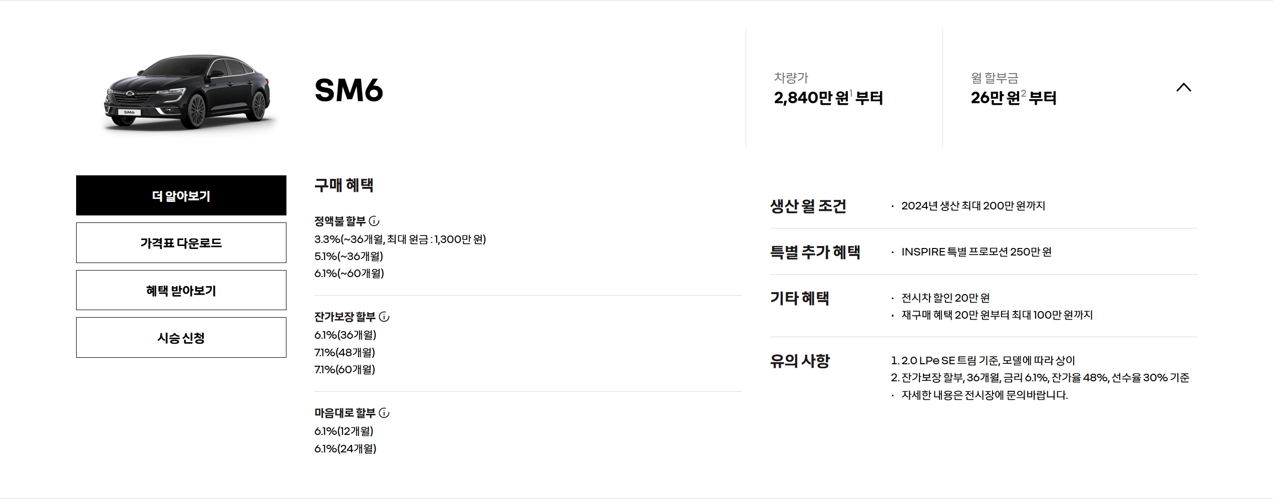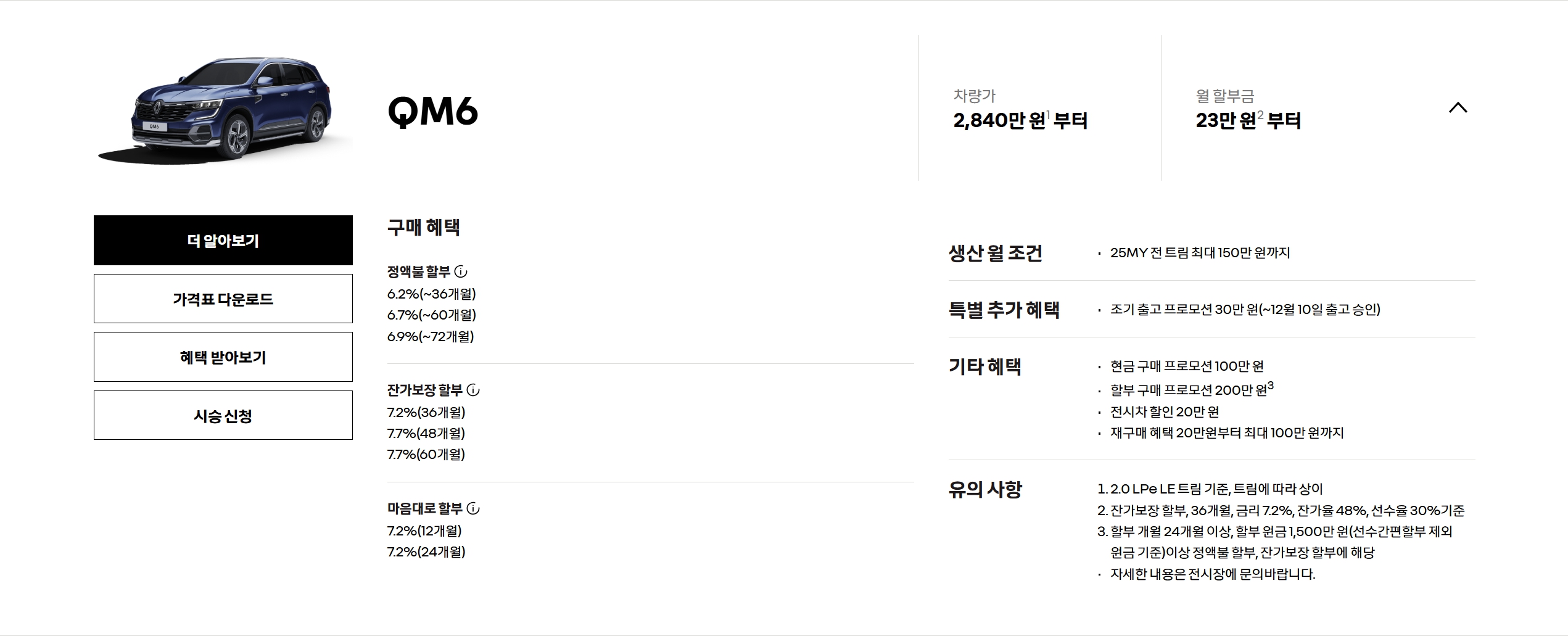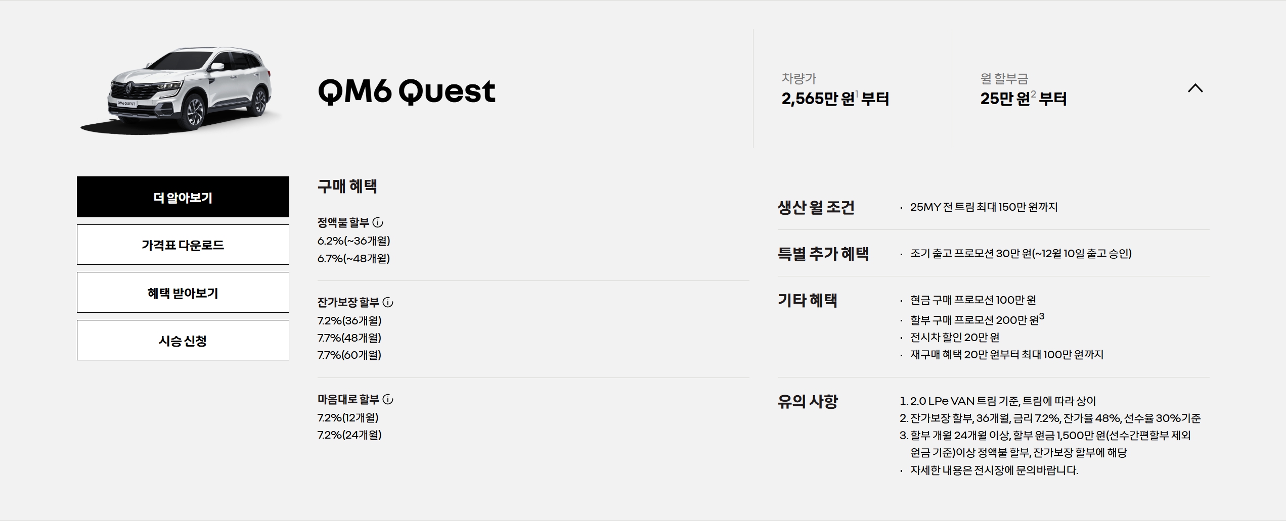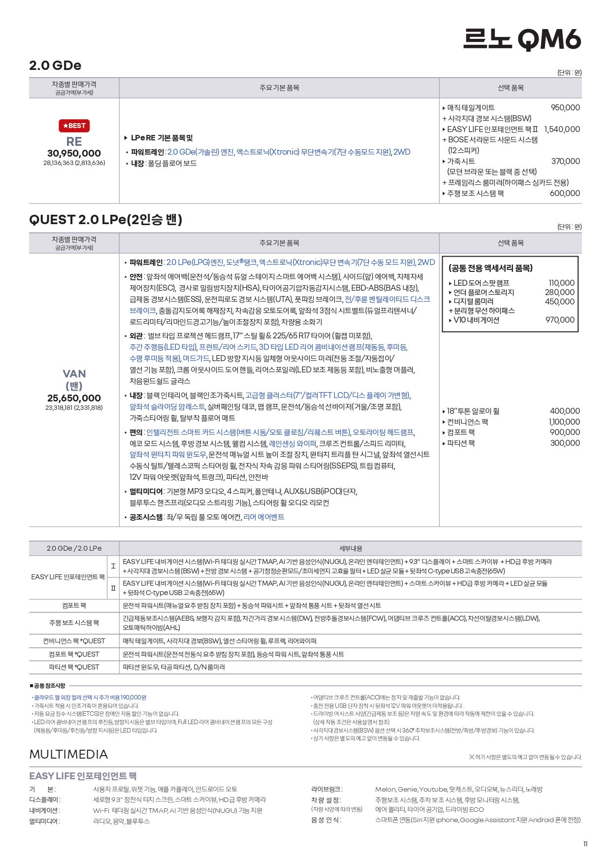밴 모델인 QM6 퀘스트도 동일하게 적용됩니다.