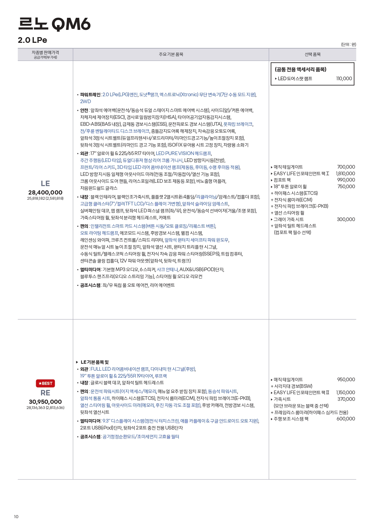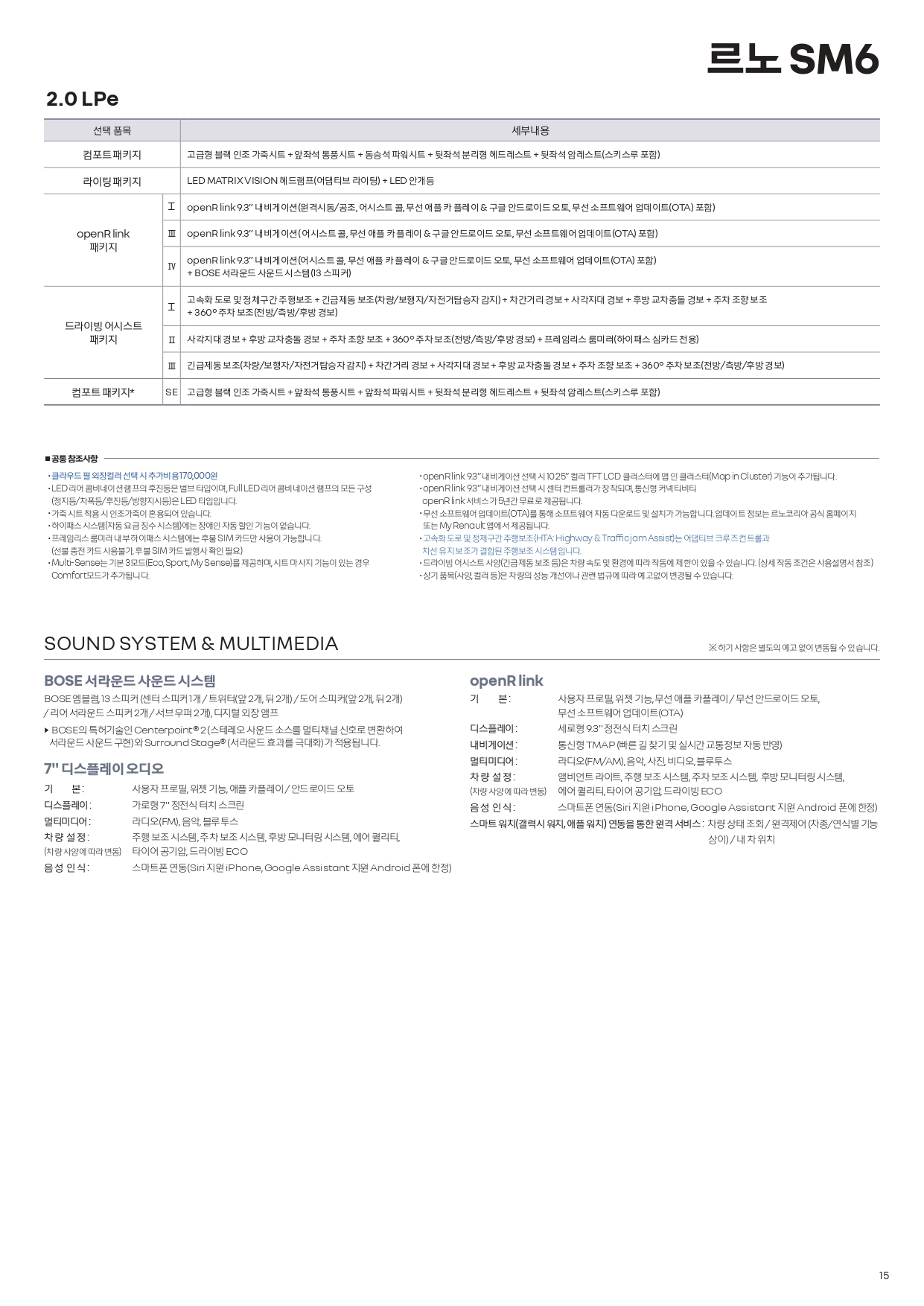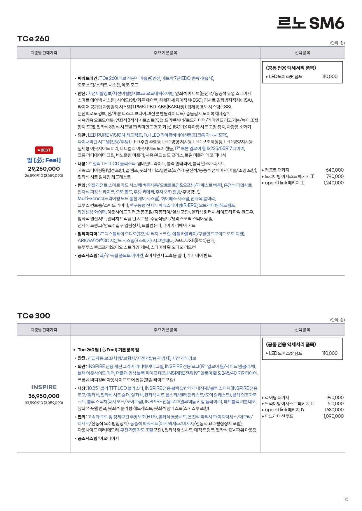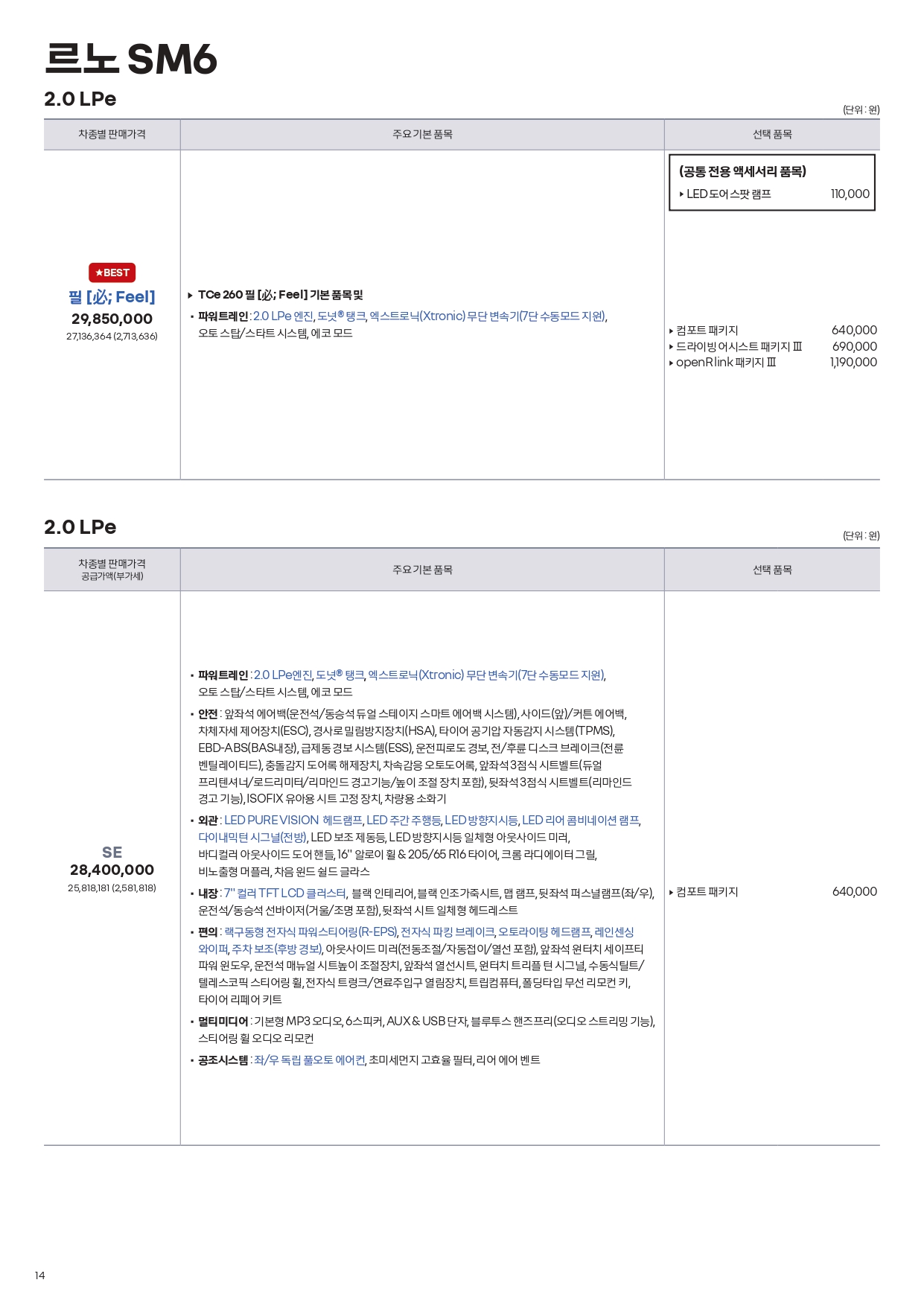 기존에는 가장 저렴한 SM6 모델은 TCe260 필 사양이었으나, 지금은 2.0 LPe SE 사양입니다.