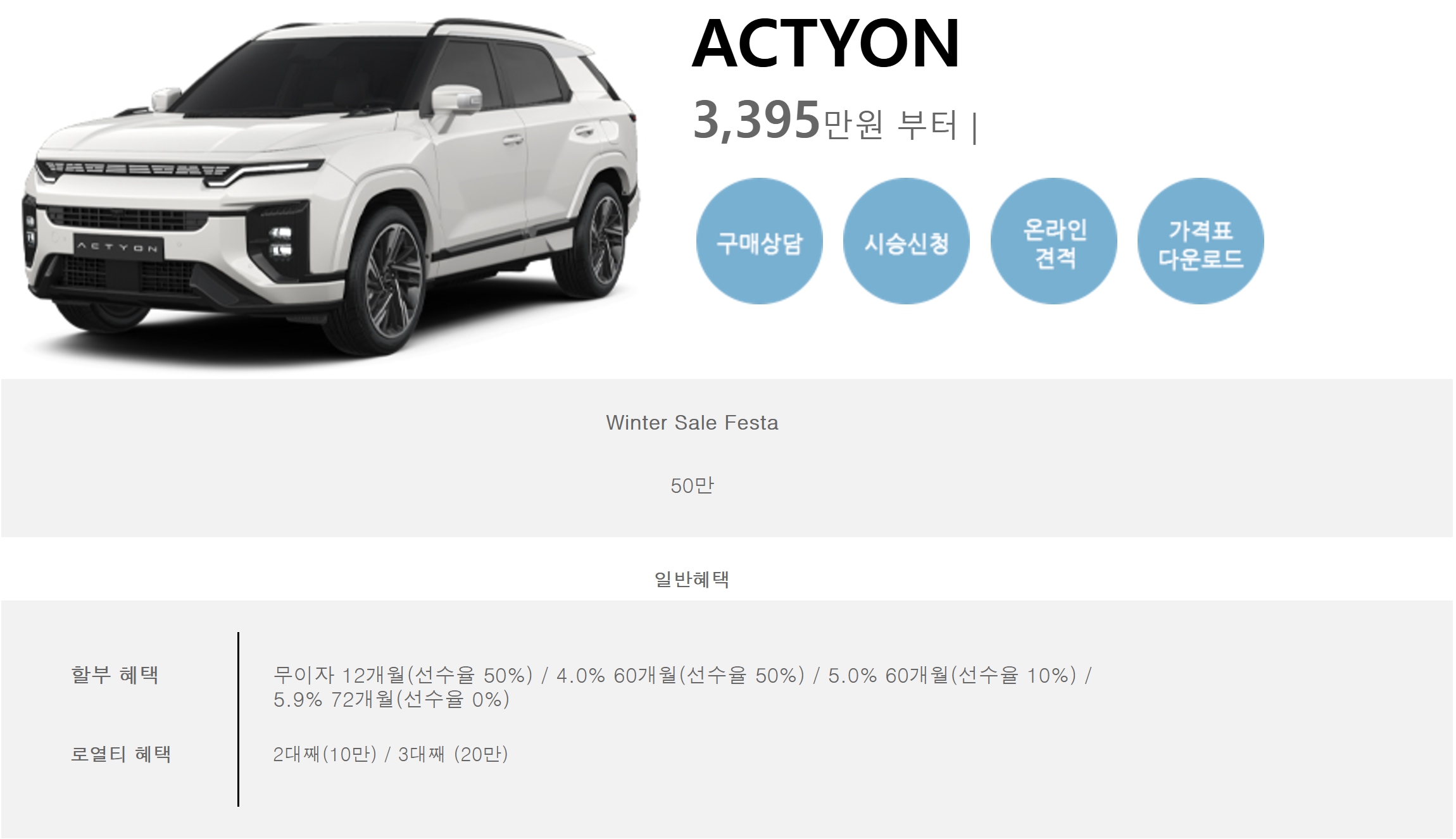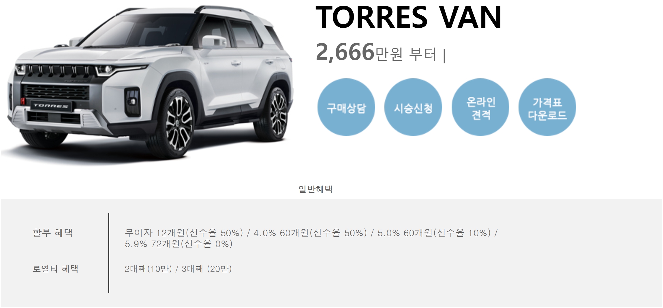 액티언 등장 후 토레스 판매량이 줄곧 하락세이기 때문에, 프로모션은 점점 더 좋아질 것으로 예상됩니다.