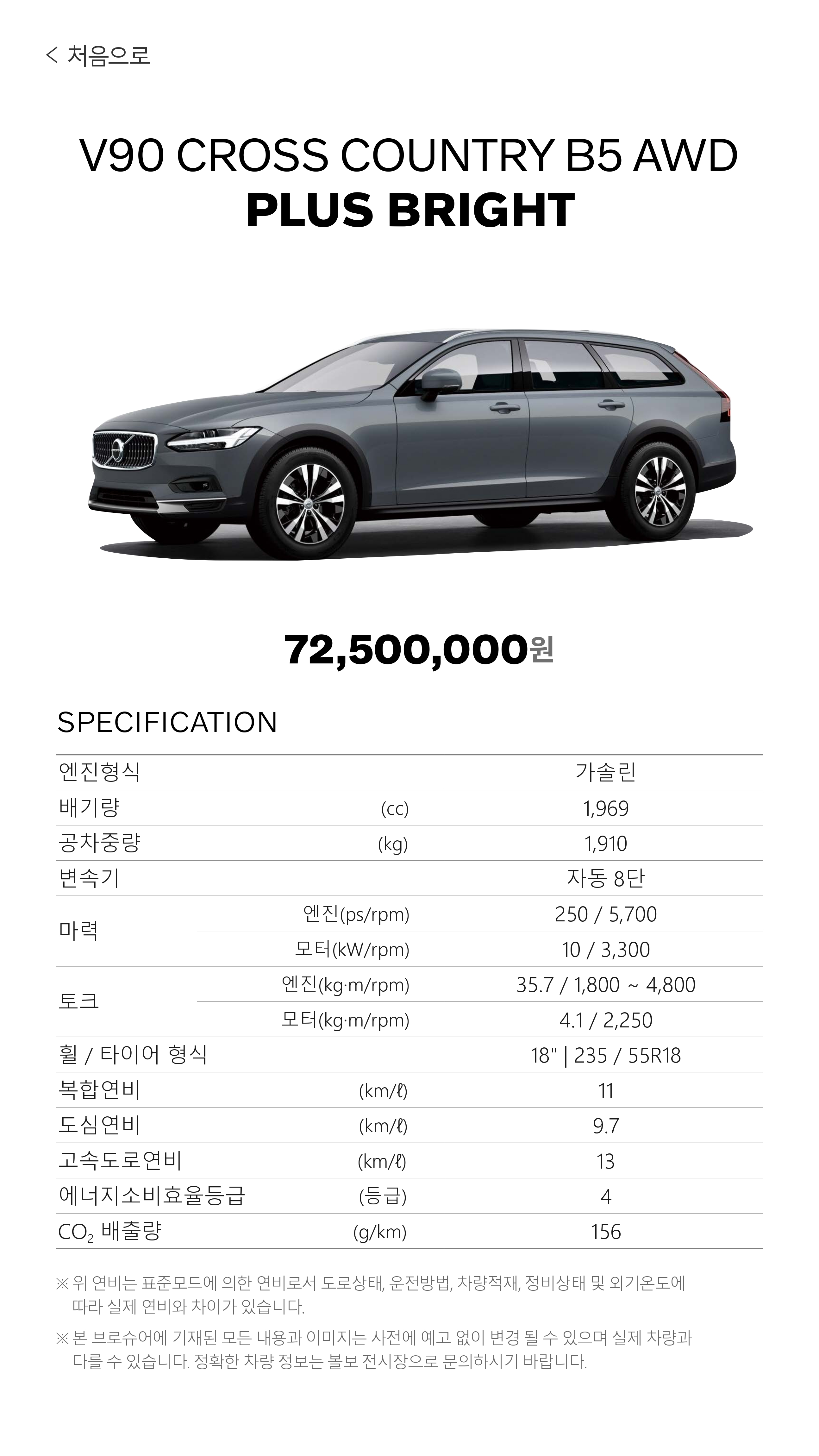 2025 V90 크로스컨트리 플러스 : 7,250 만원