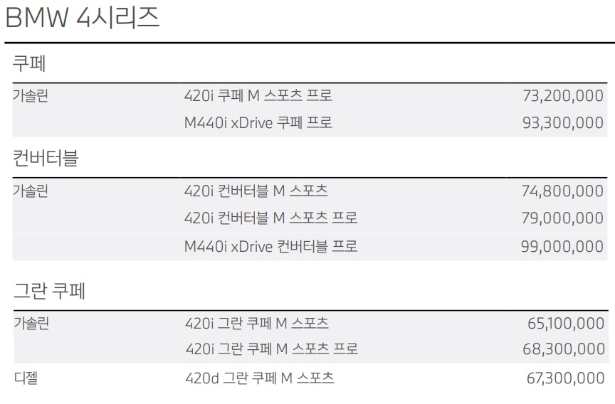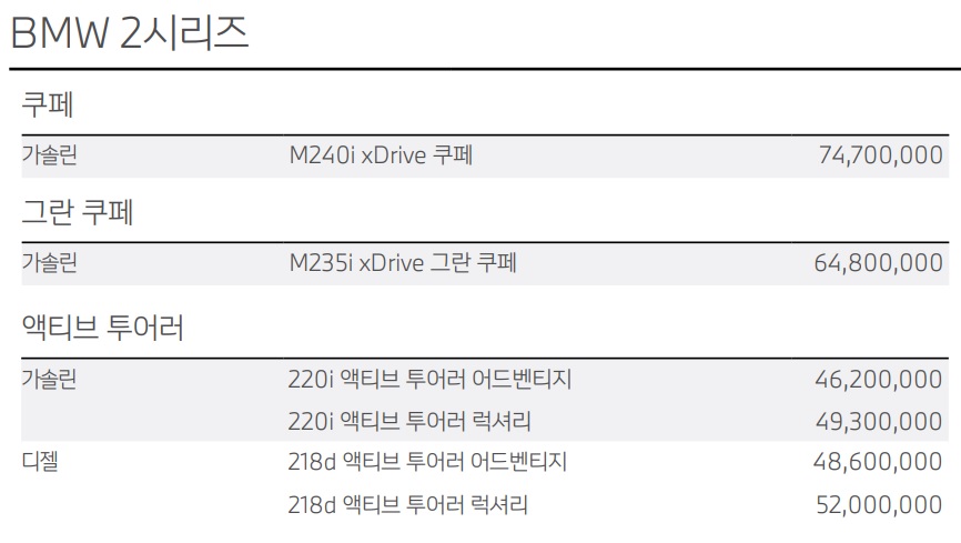 220i 그란쿠페 라인업이 삭제되었습니다.