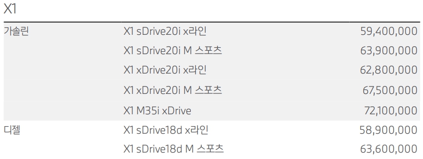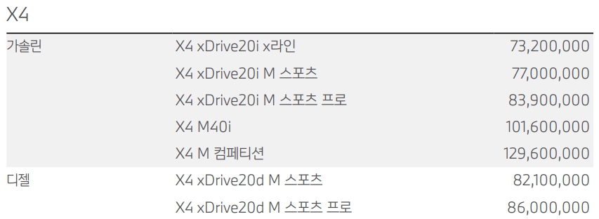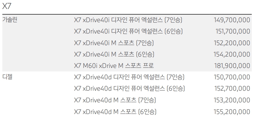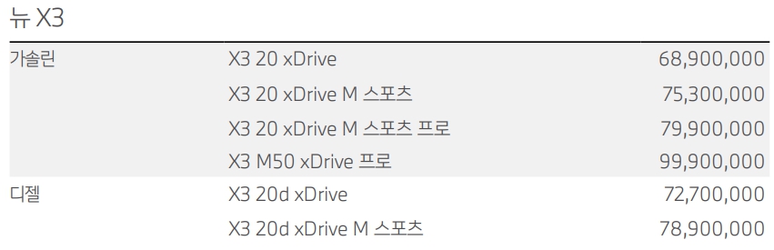 구형 X3 가격표가 완전히 사라졌고, 신형 X3 가격표가 업데이트 되었습니다.