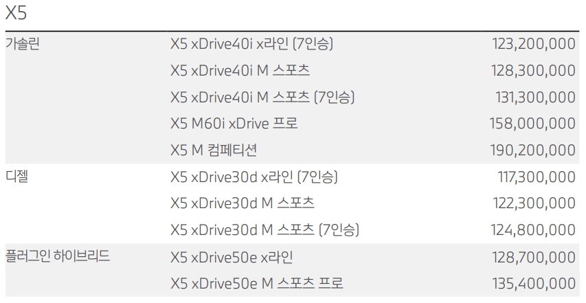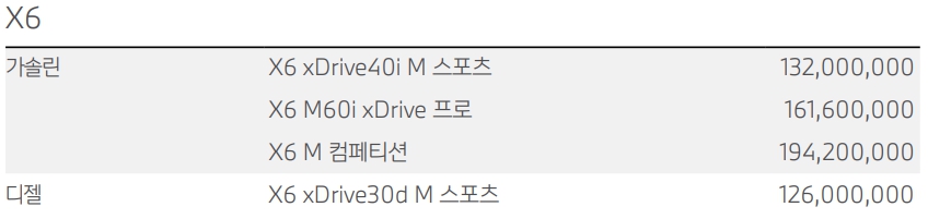 X6 xDrive40i M 스포츠 : 60만원 인상