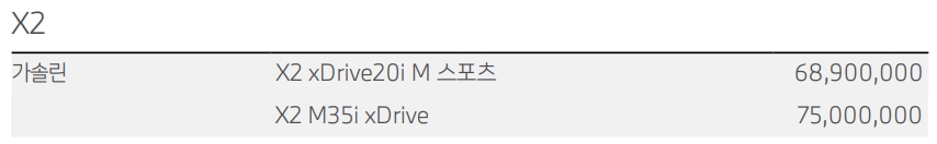 X2 xDrive20i M 스포츠 : 60만원 인상