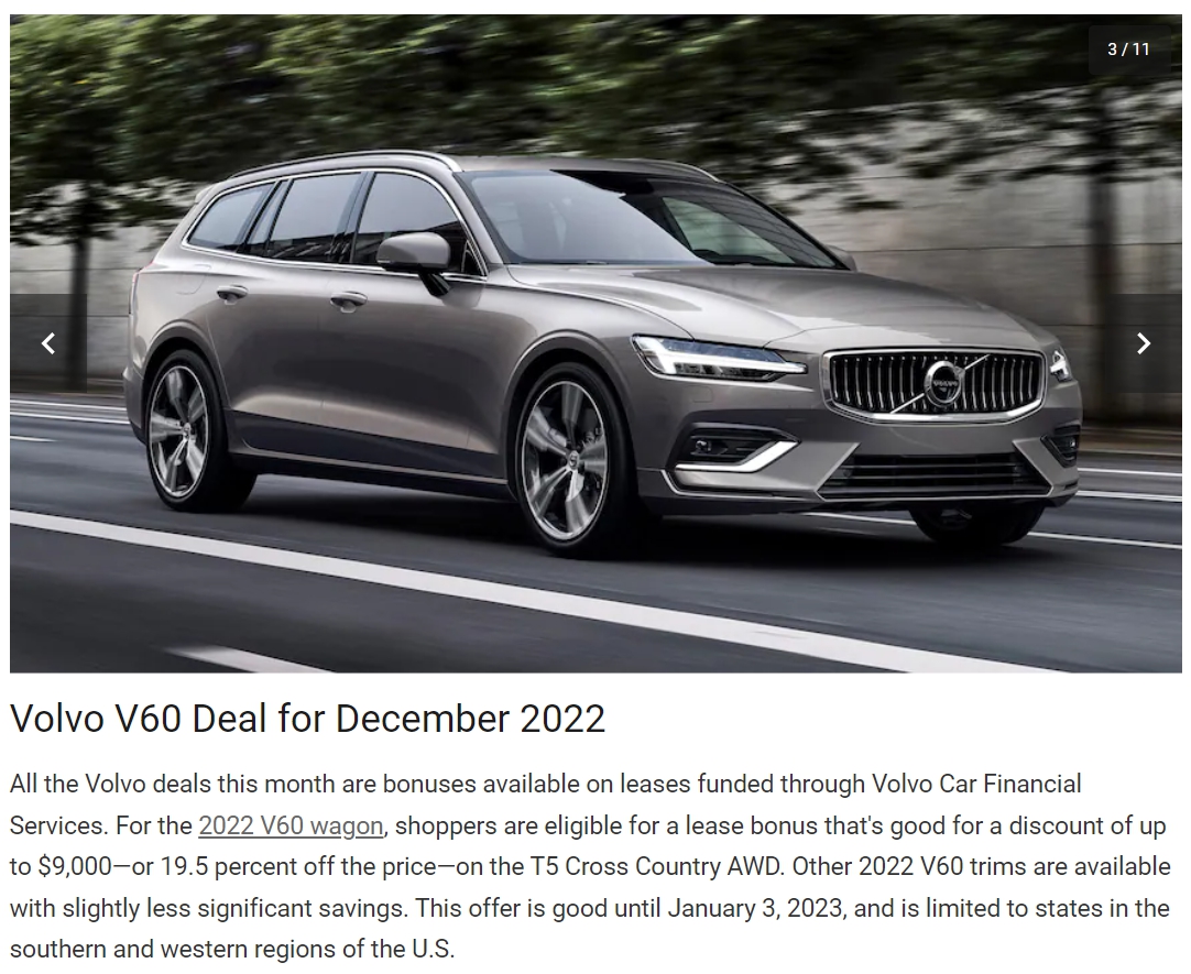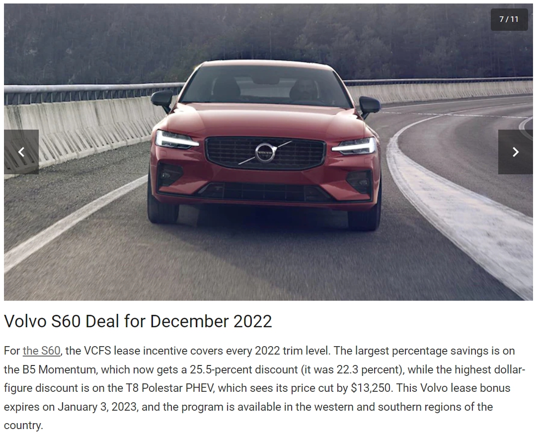 그런 도중에, 이번 북미 자동차 잡지인 모터트렌드에서 발표한 12월 자동차 핫딜 차종을 선정했는데, 무려 5종 중 3종이 볼보의 차량입니다.