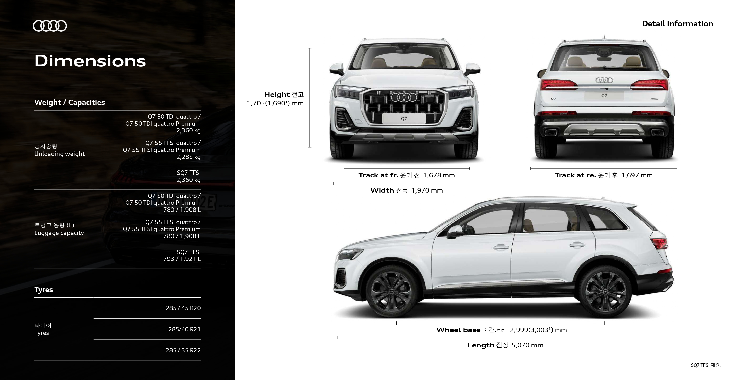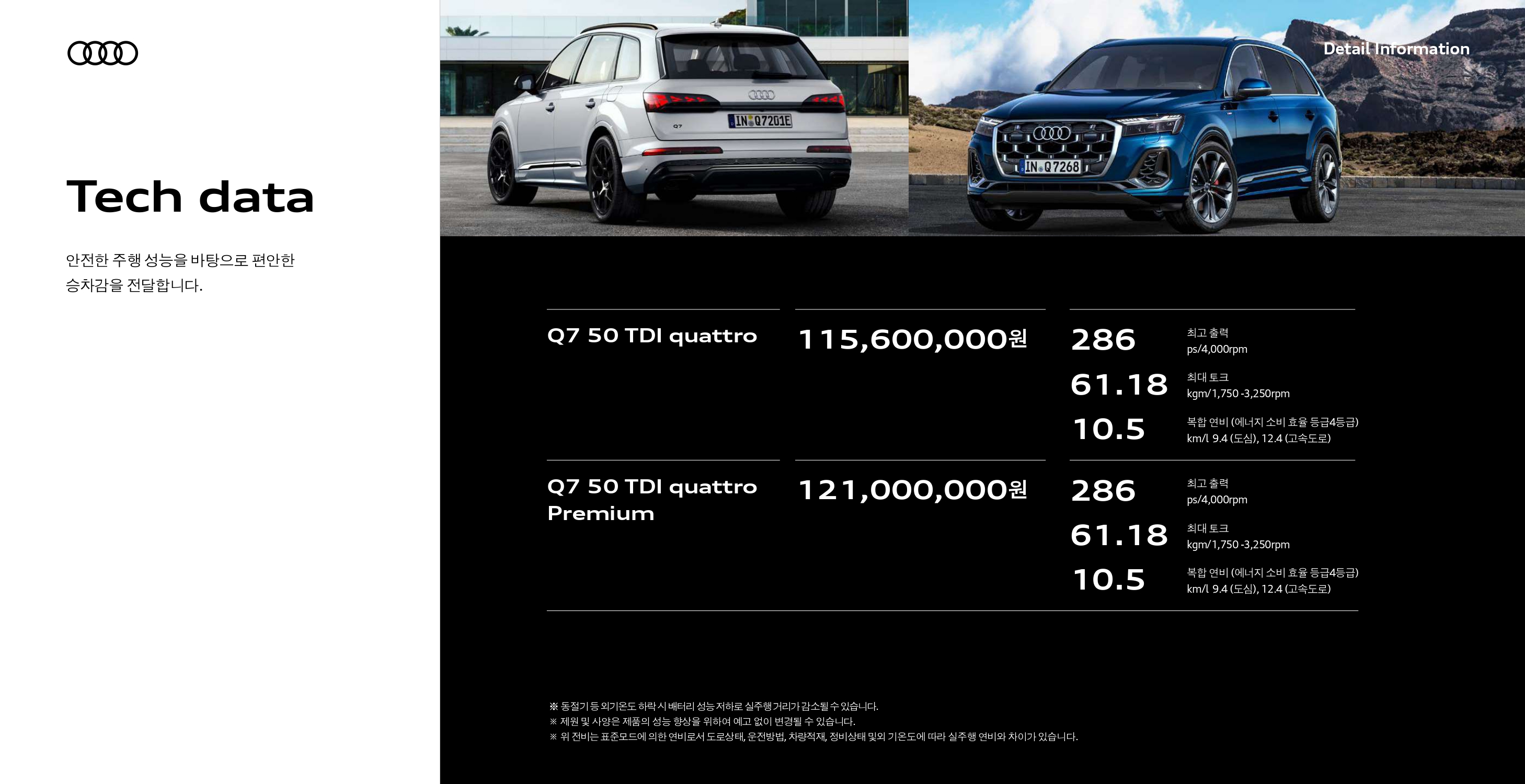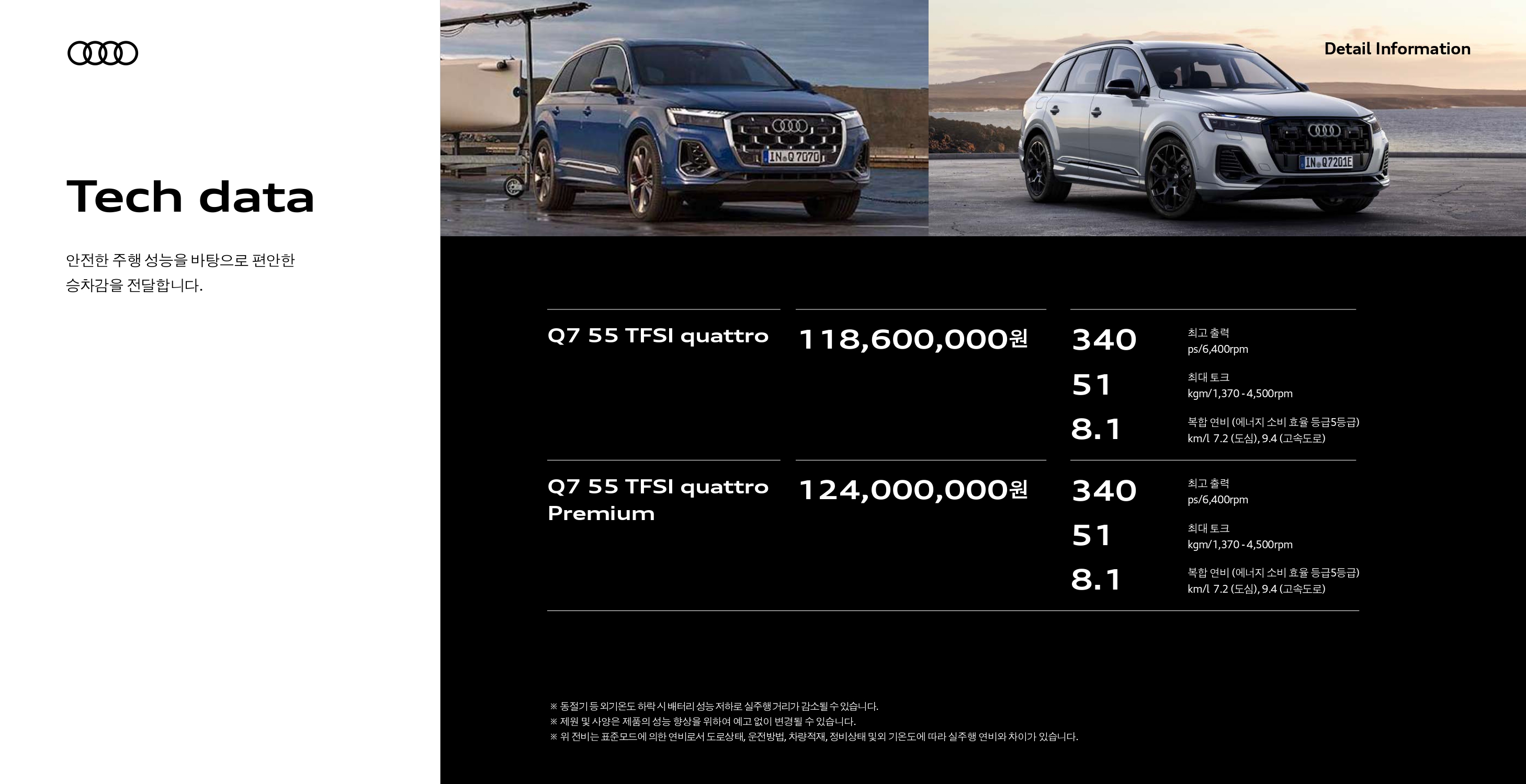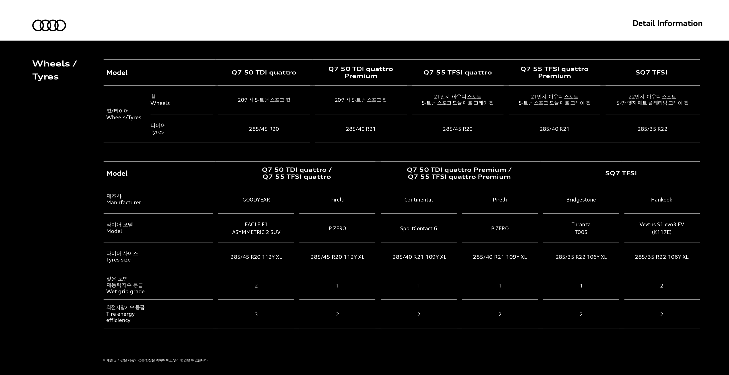마지막으로 2025 Q7 성능이 궁금하신 분들을 위해 준비한 제원표 입니다.