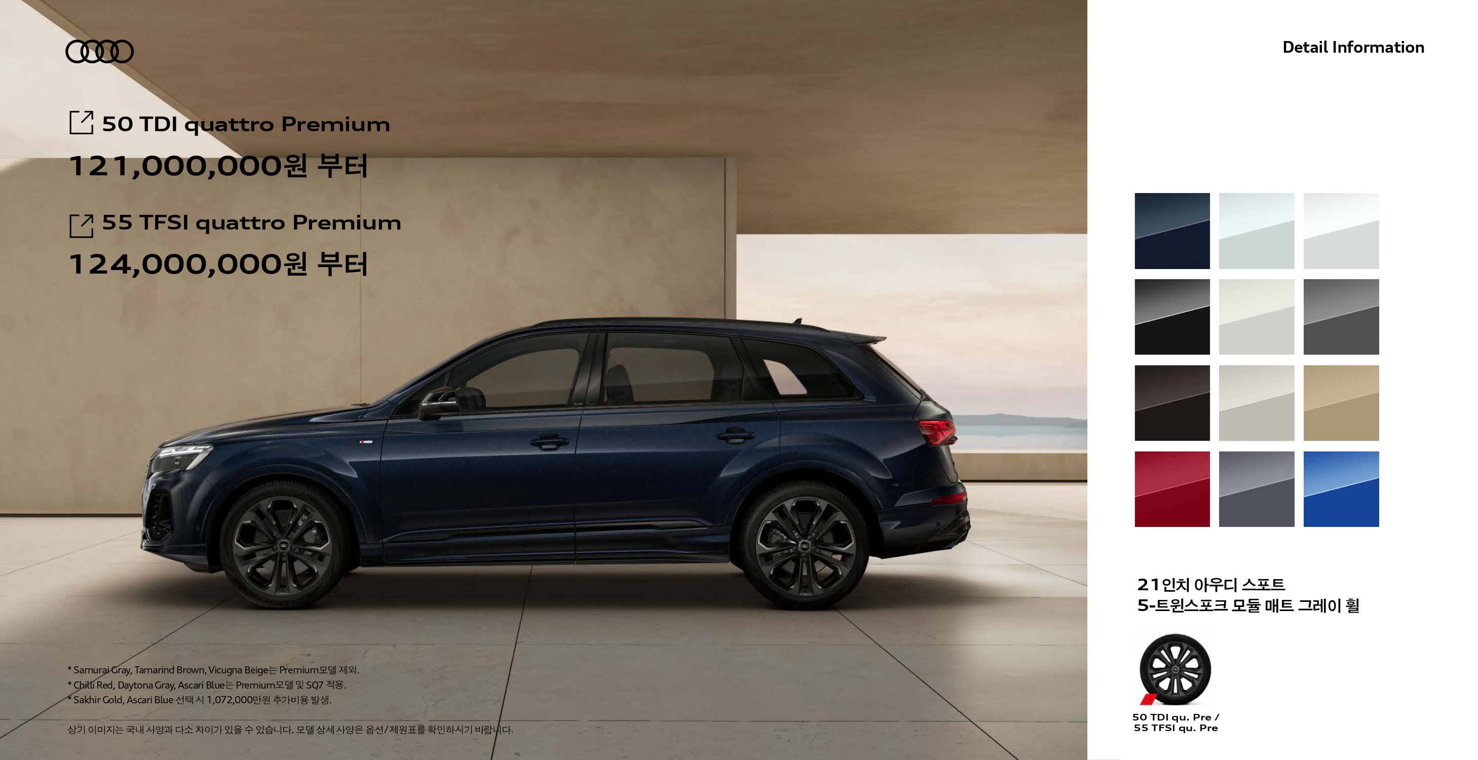 혹시라도, 좀 더 자세한 내용이 궁금하신 분들께서는 아래에서 2025 아우디 Q7 카탈로그 받아 가시기 바랍니다.