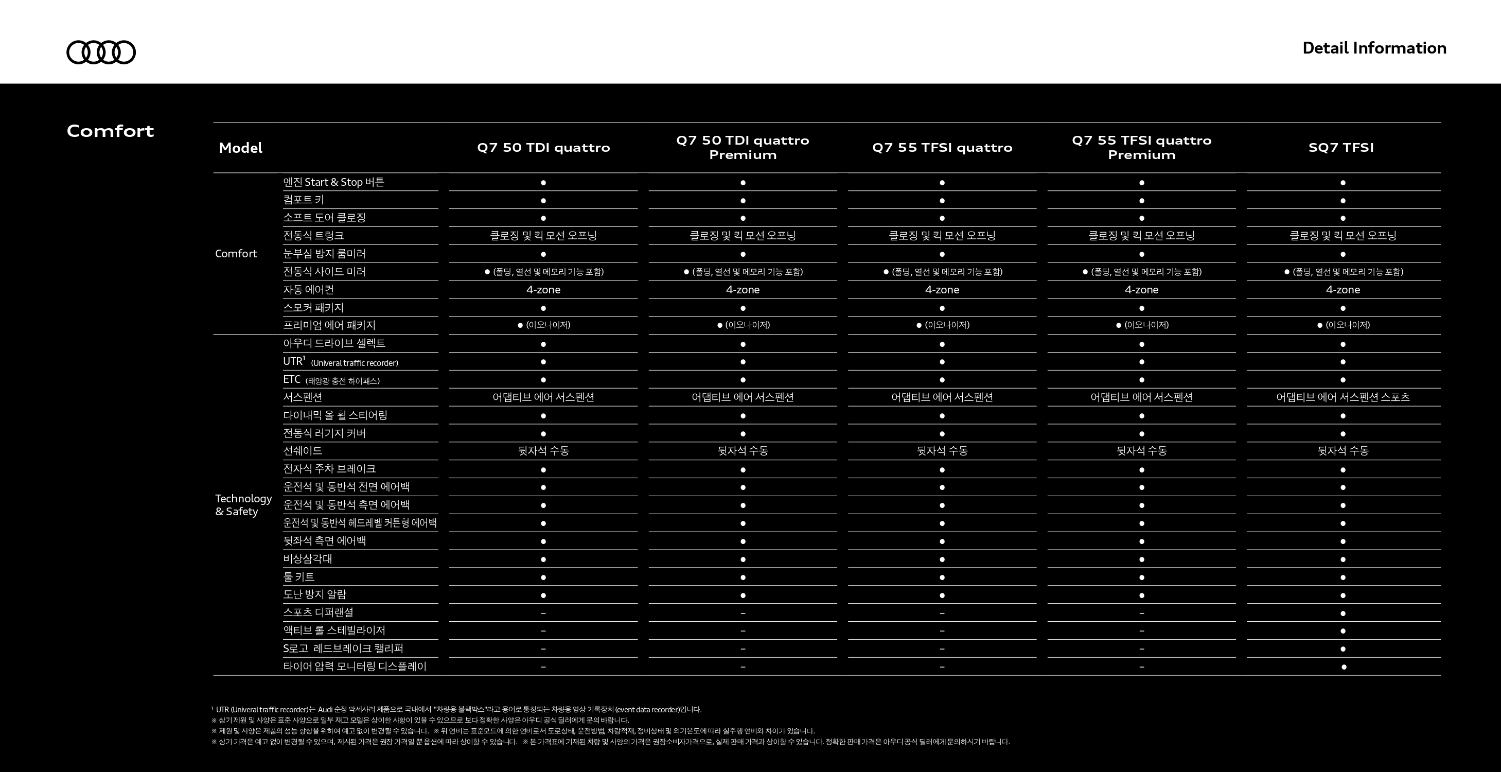 SUV의 기능에 충실하고, 좀 더 편안한 승차감을 원하시는 분께서는 50TDI, 55TFSI 컴포트 트림을 구매하시는 게 좋아 보입니다.