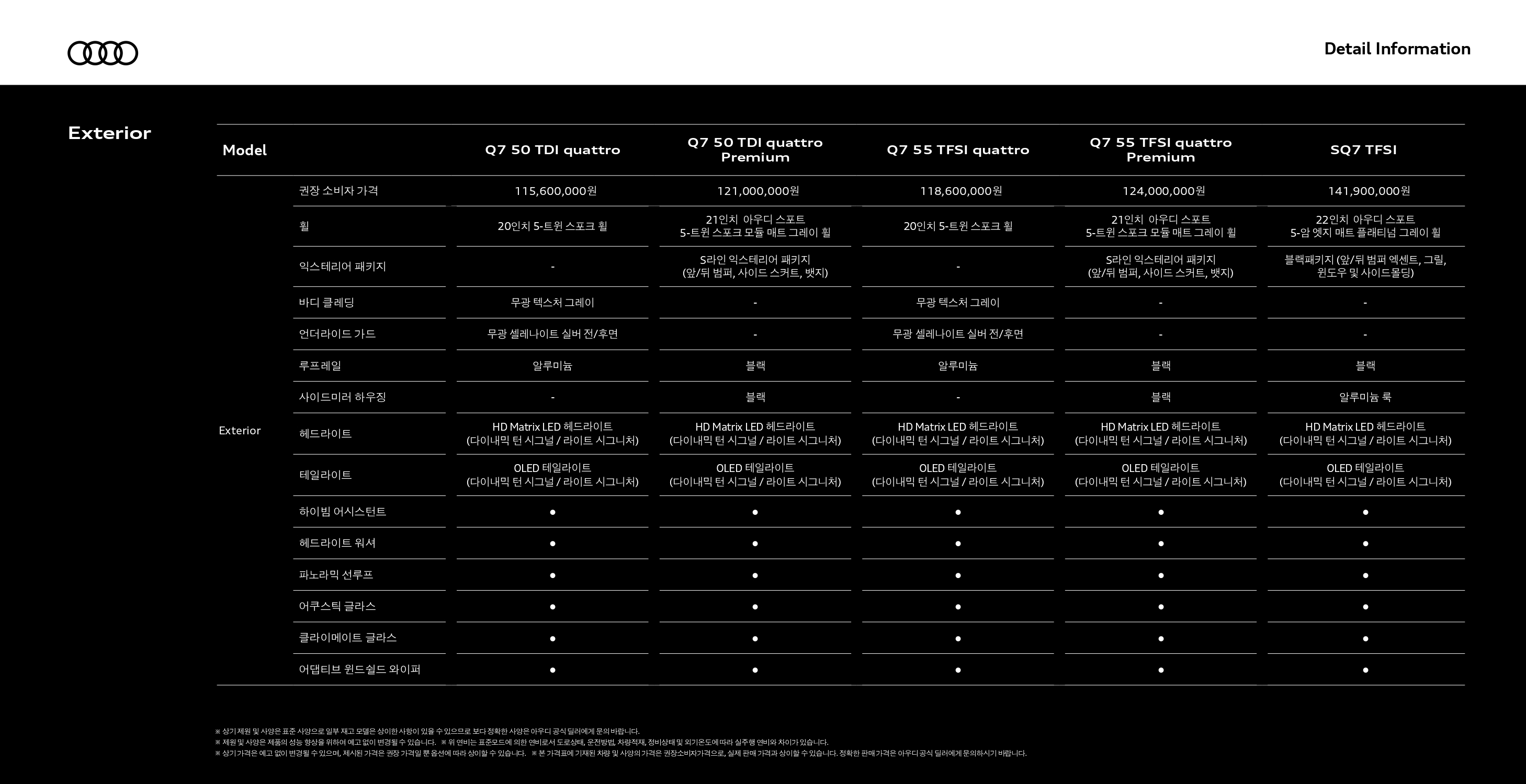 ▼ 2025 아우디 Q7 옵션표 ▼
