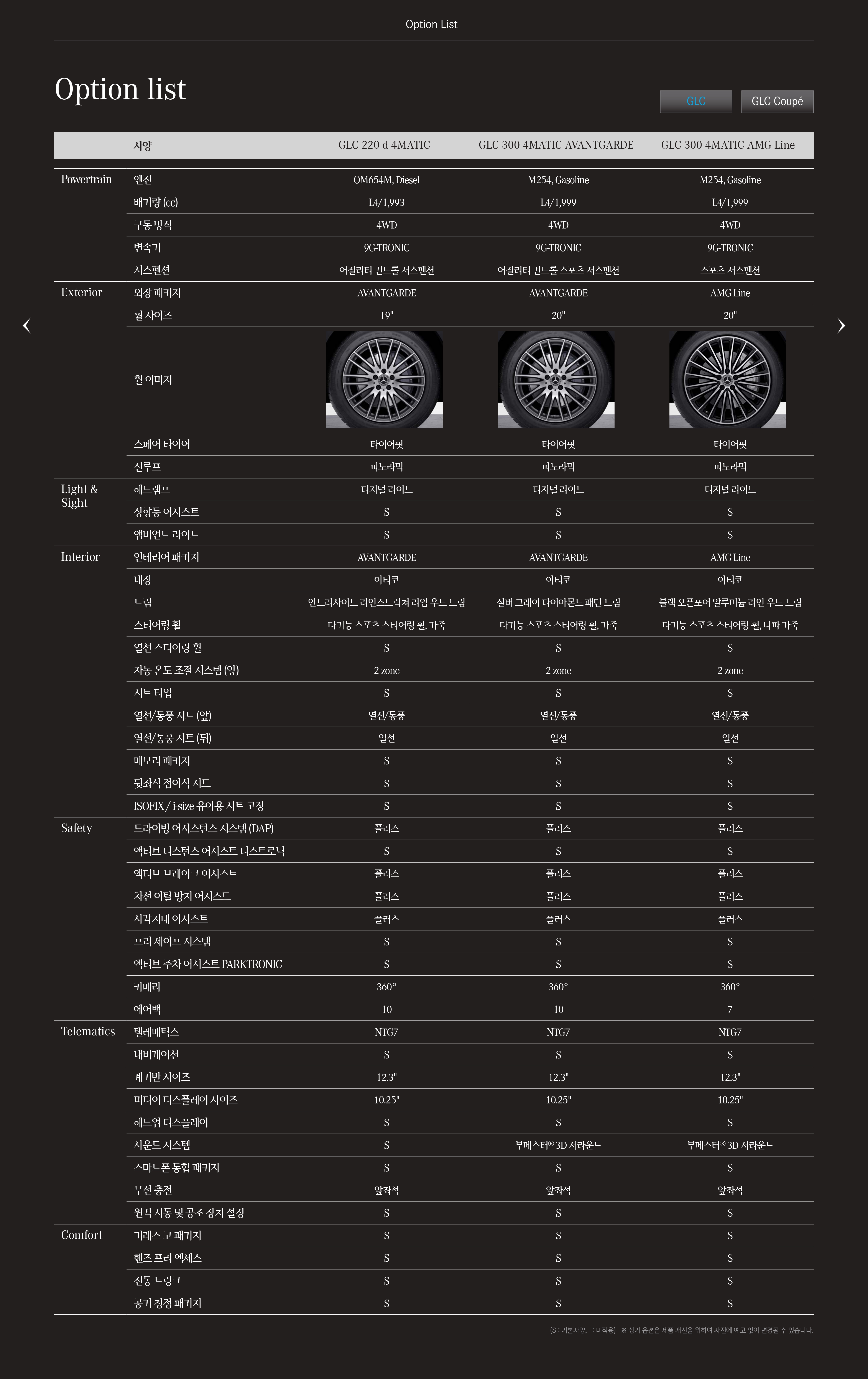 또 GLC220d에만 19인치 휠이 적용됩니다.