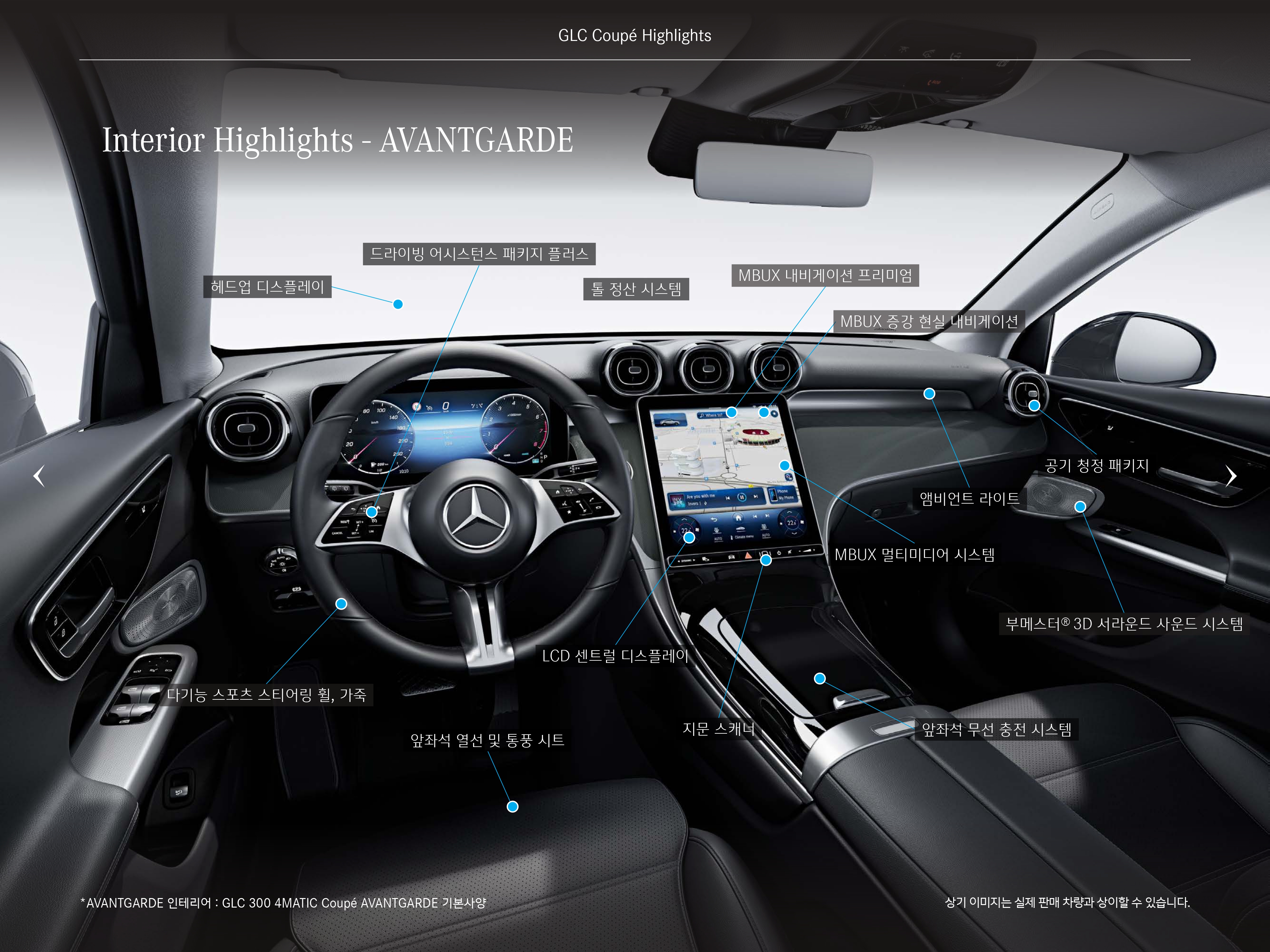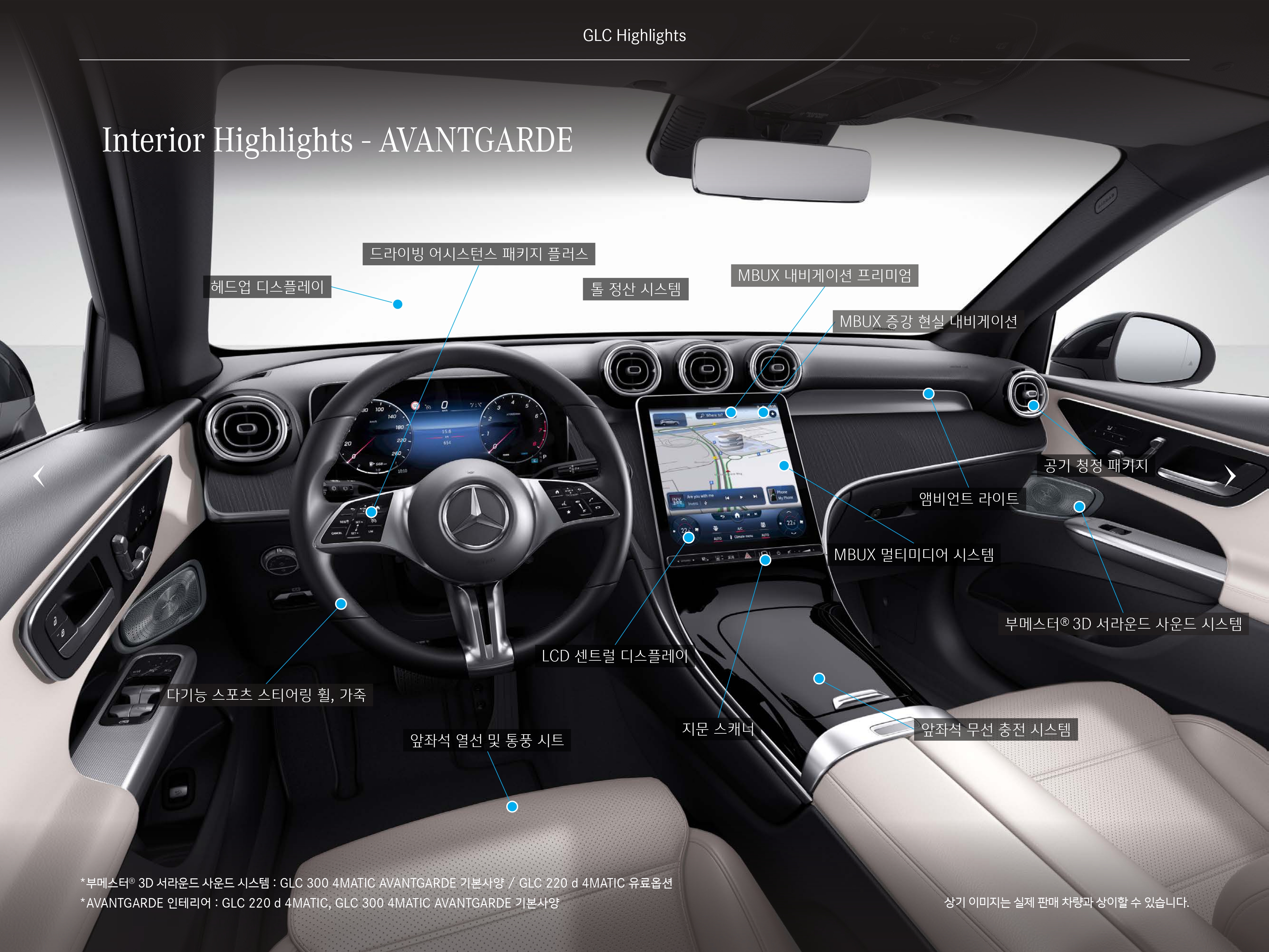 GLC220d 모델의 경우, GLC300 아방가르드와 동일하게 아방가르드 트림이긴 하지만,
