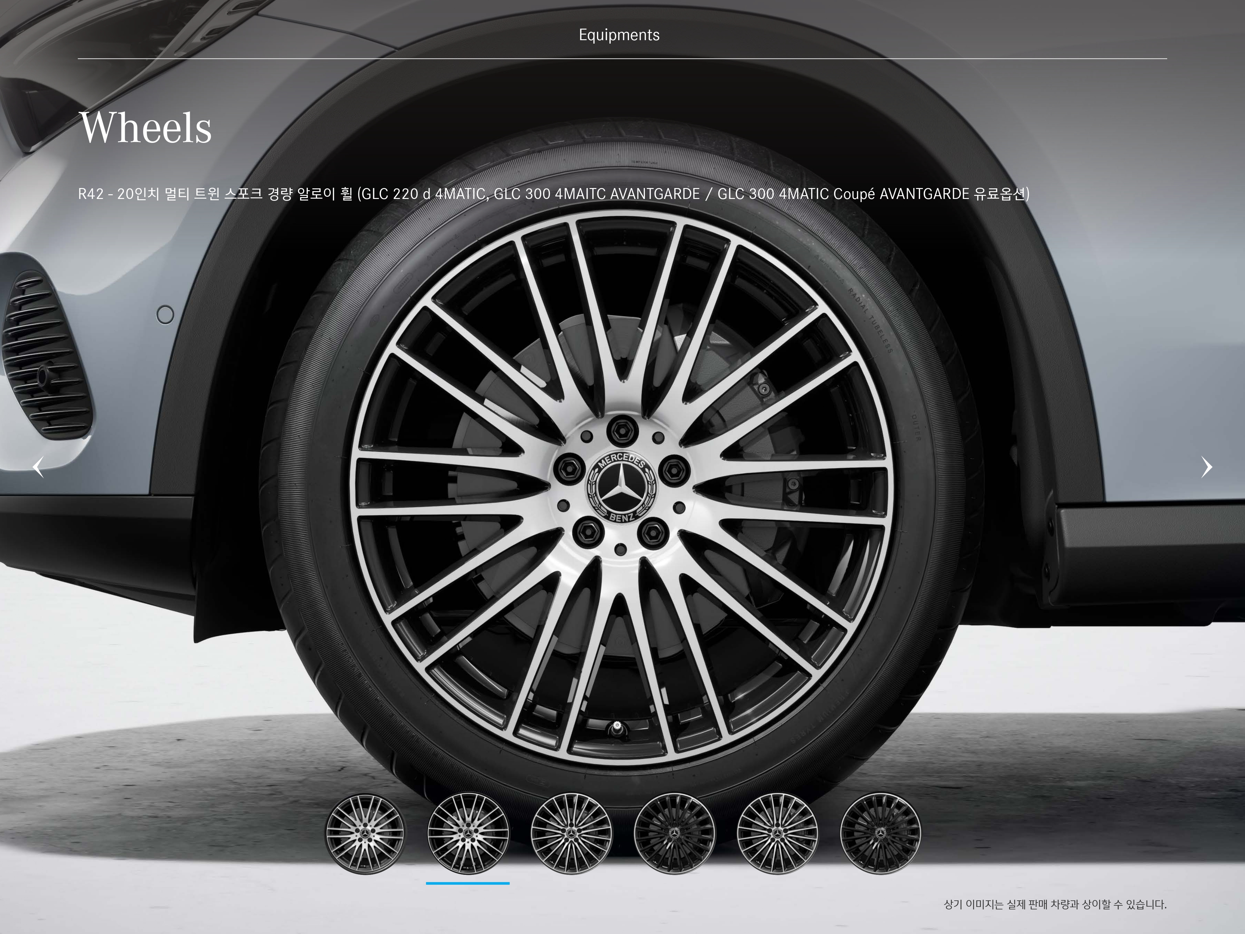 GLC300은 아방가르드와 AMG 라인 선택에 따라 휠 디자인이 바뀌긴 해도, 인치는 동일하게 20인치입니다.