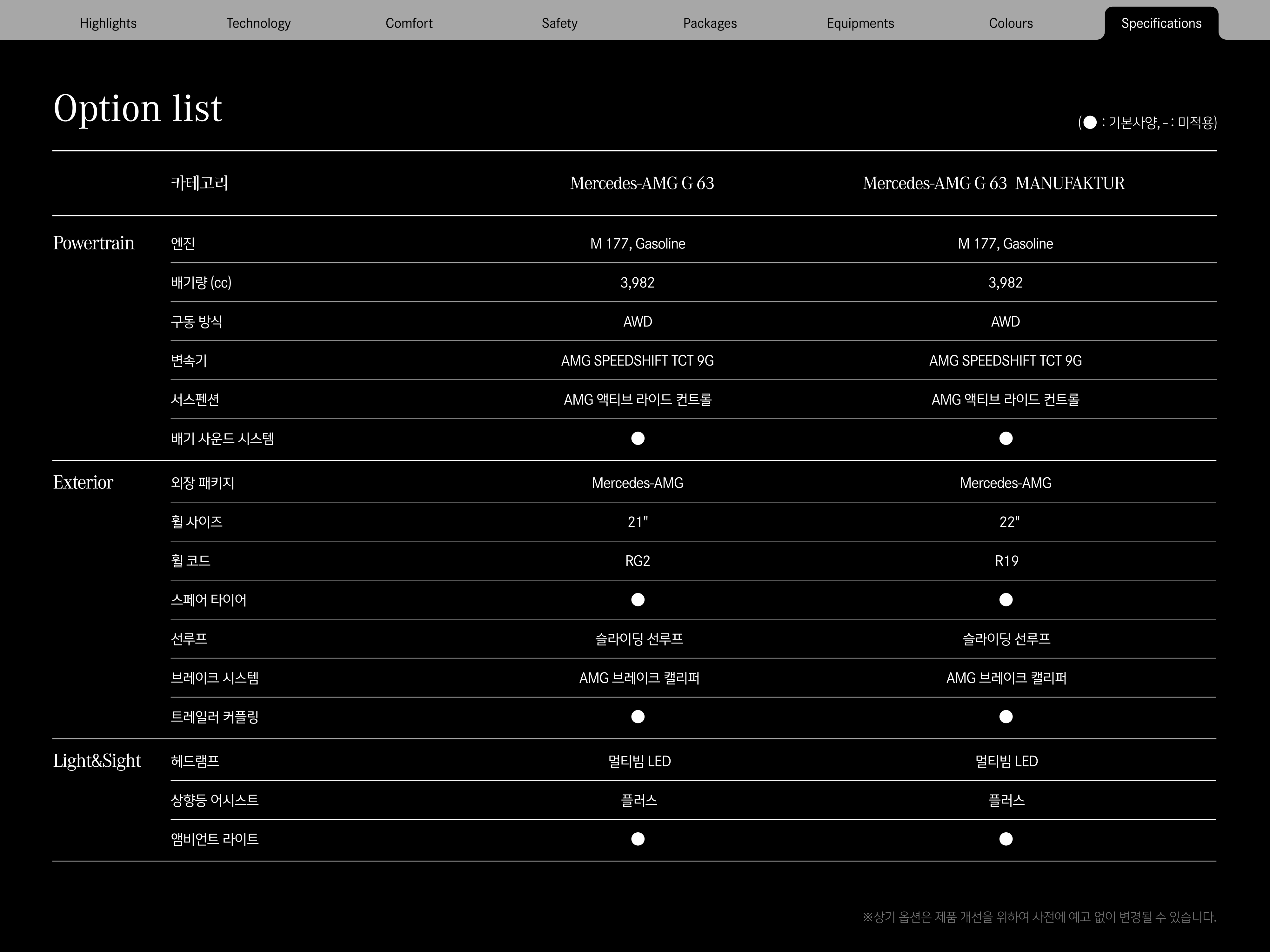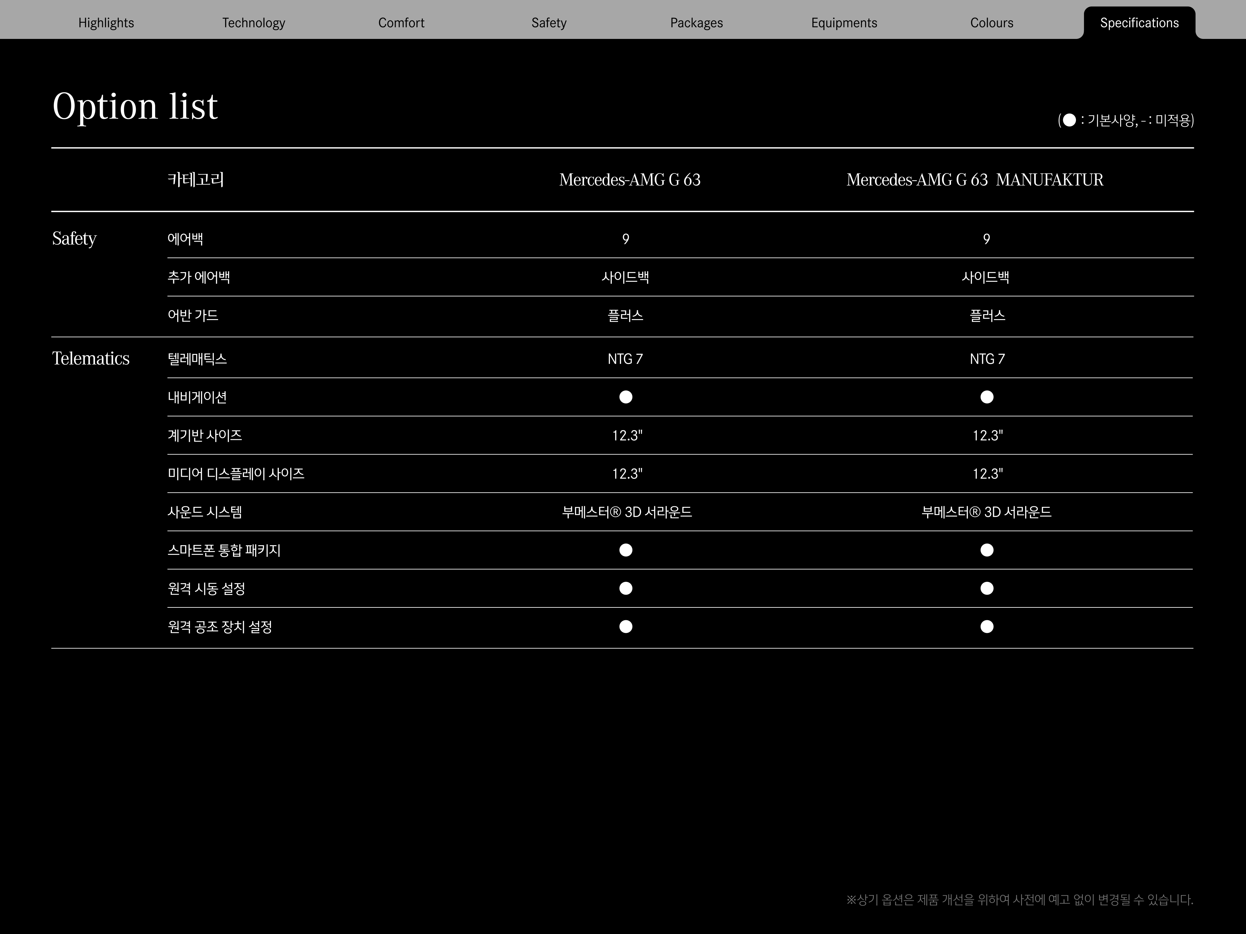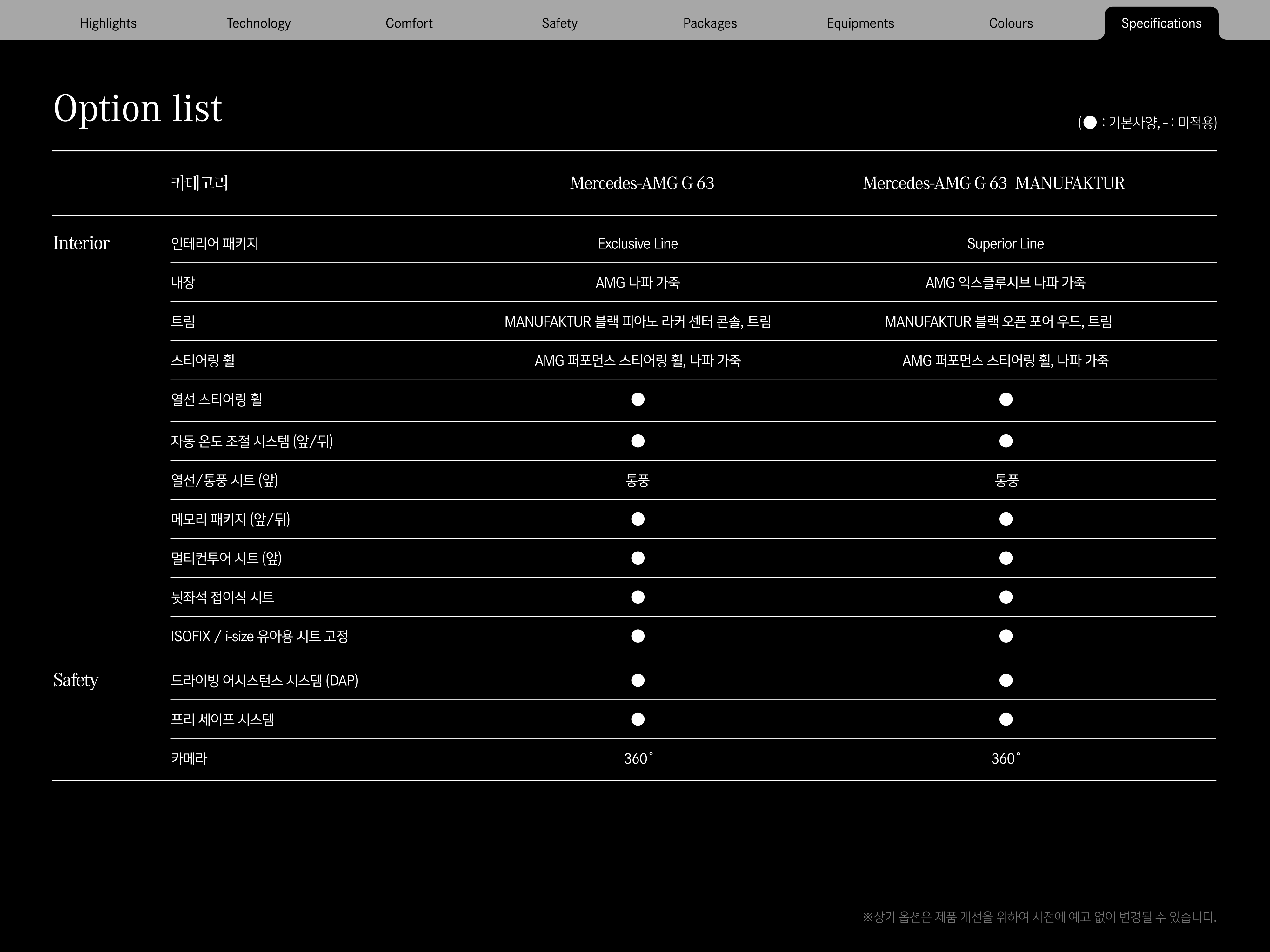 그래서, 옵션표 또한 같은 G63 AMG 내에서만 비교하고 있습니다.