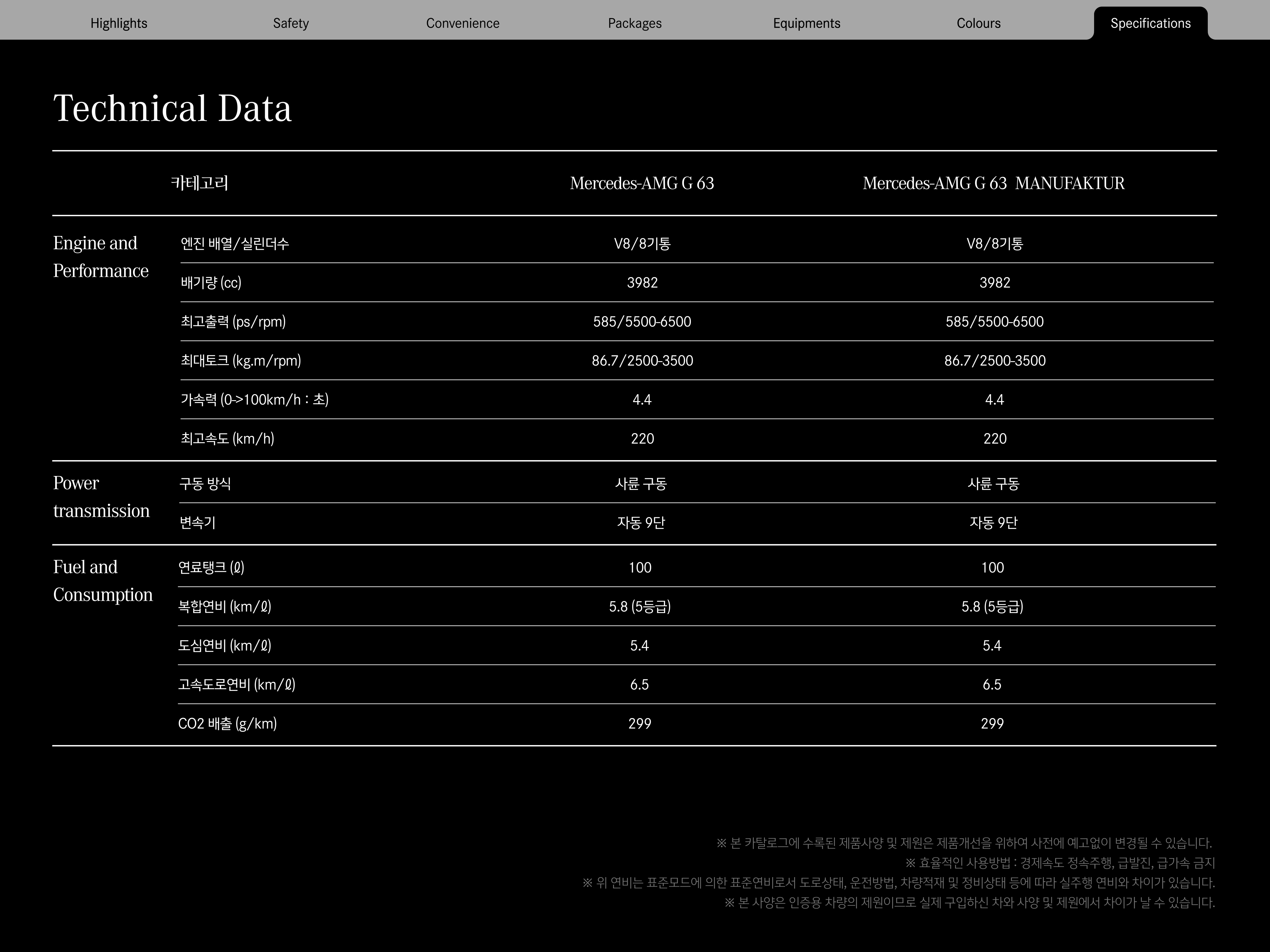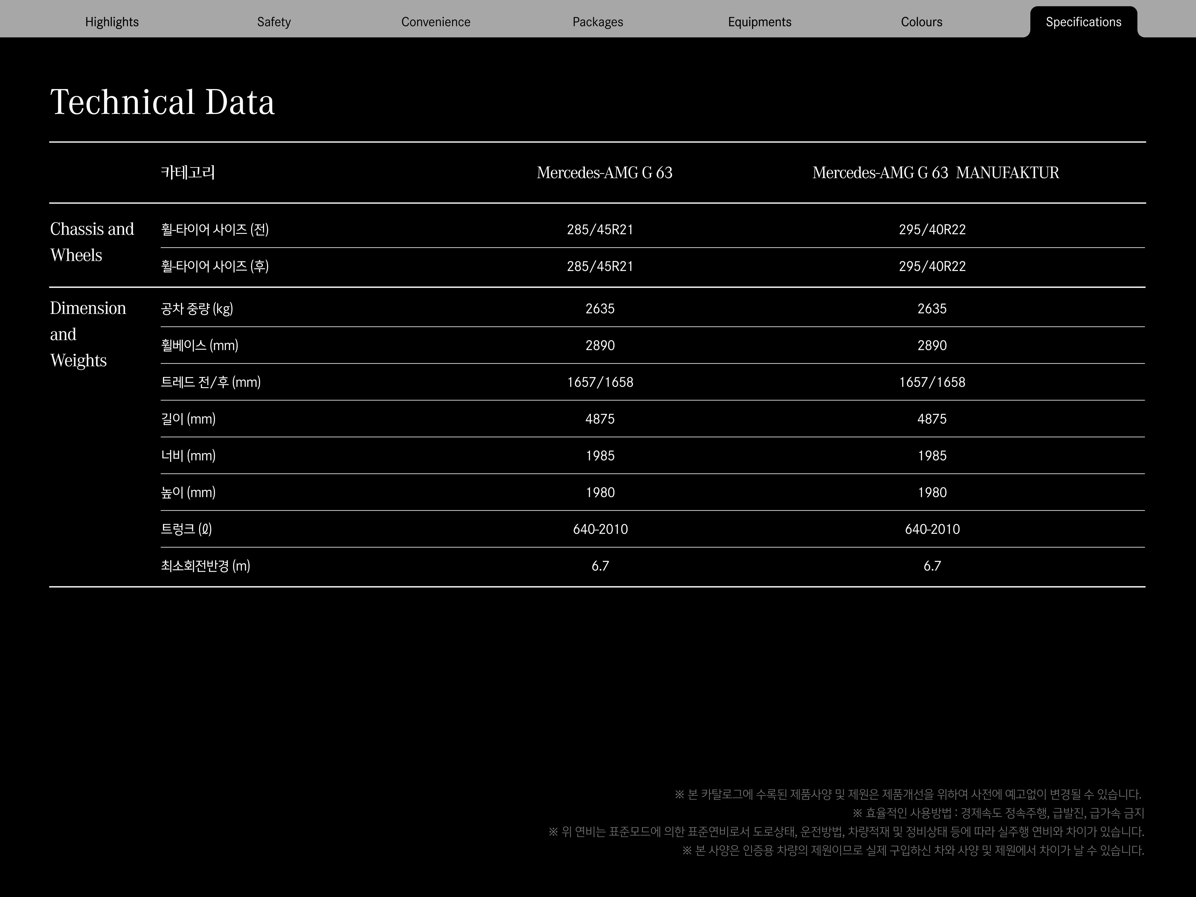 같은 G63 모델 내에서의 성능 비교라, 비교에 중점을 두시면 큰 의미는 없을 것 같고,