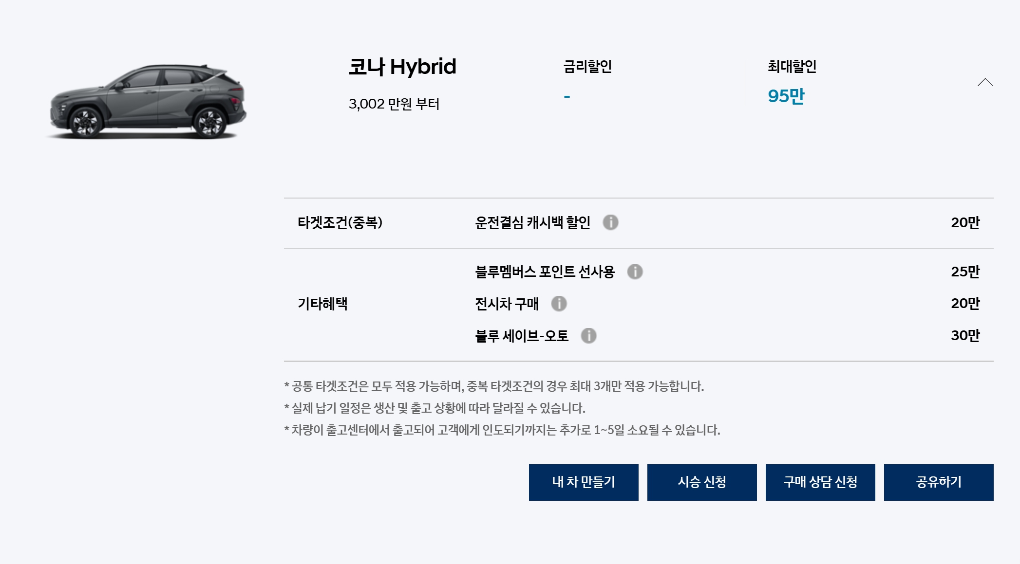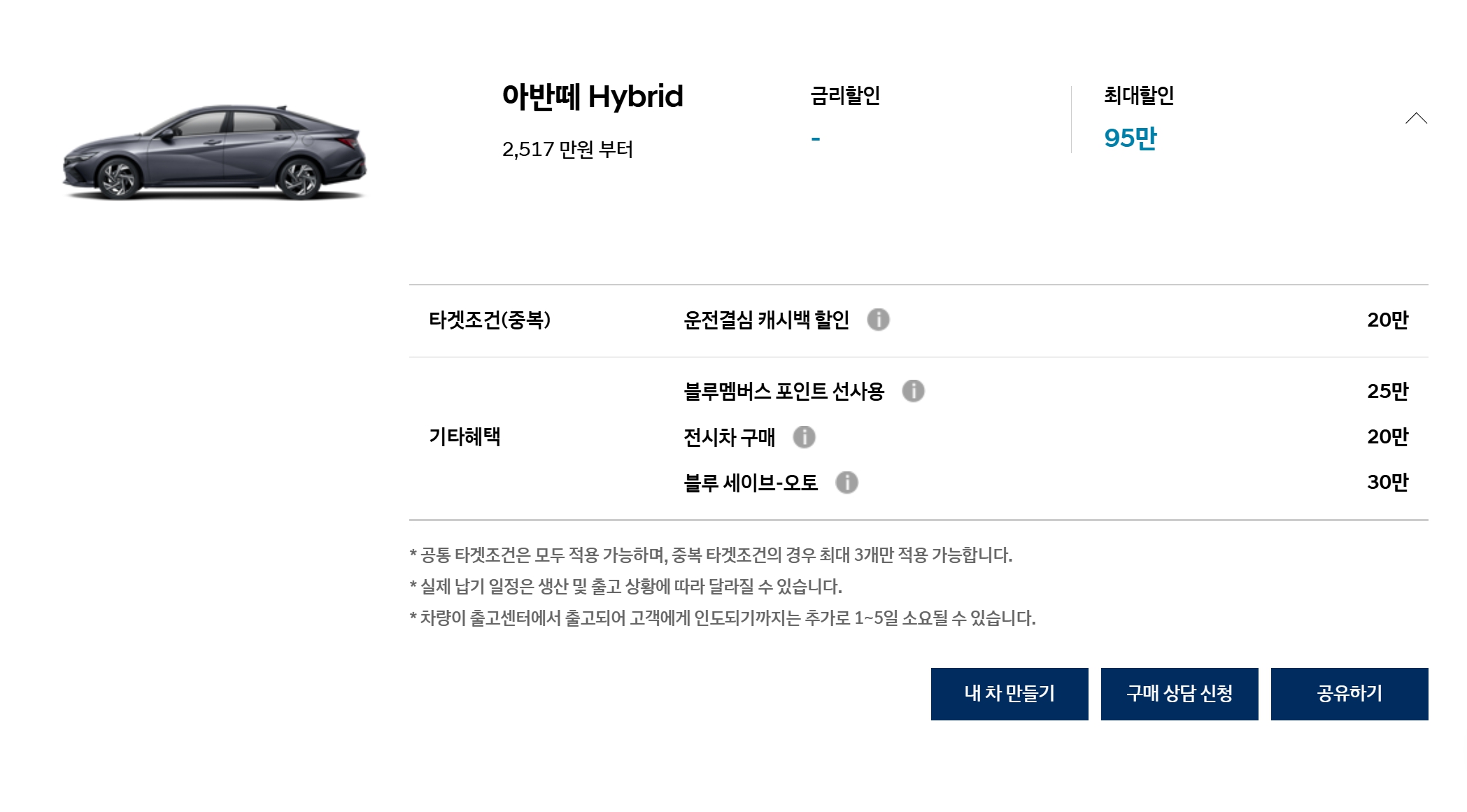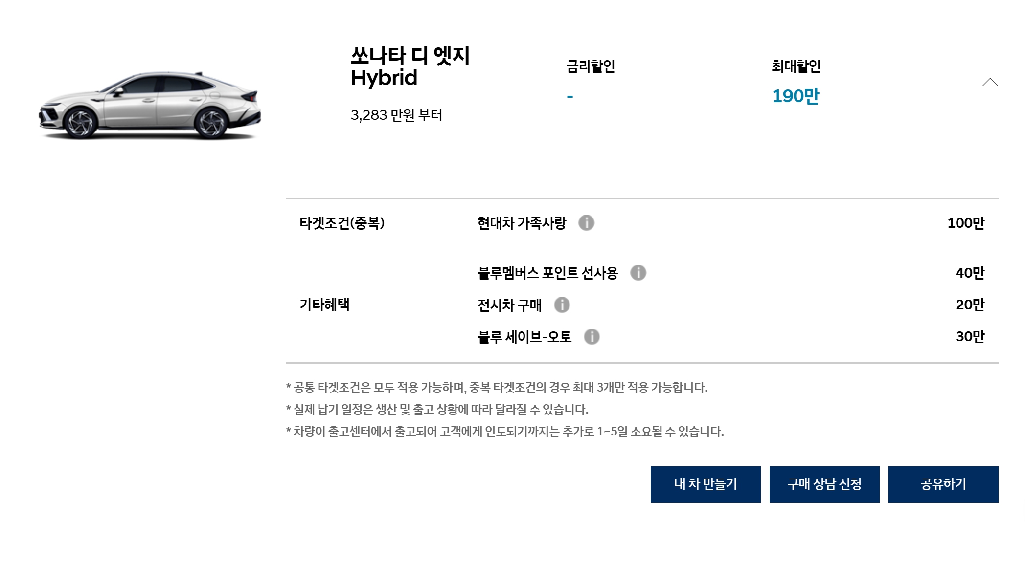 하이브리드는 재고차 할인은 없지만, 현대차 가족사랑 할인은 또 적용이 되기에...