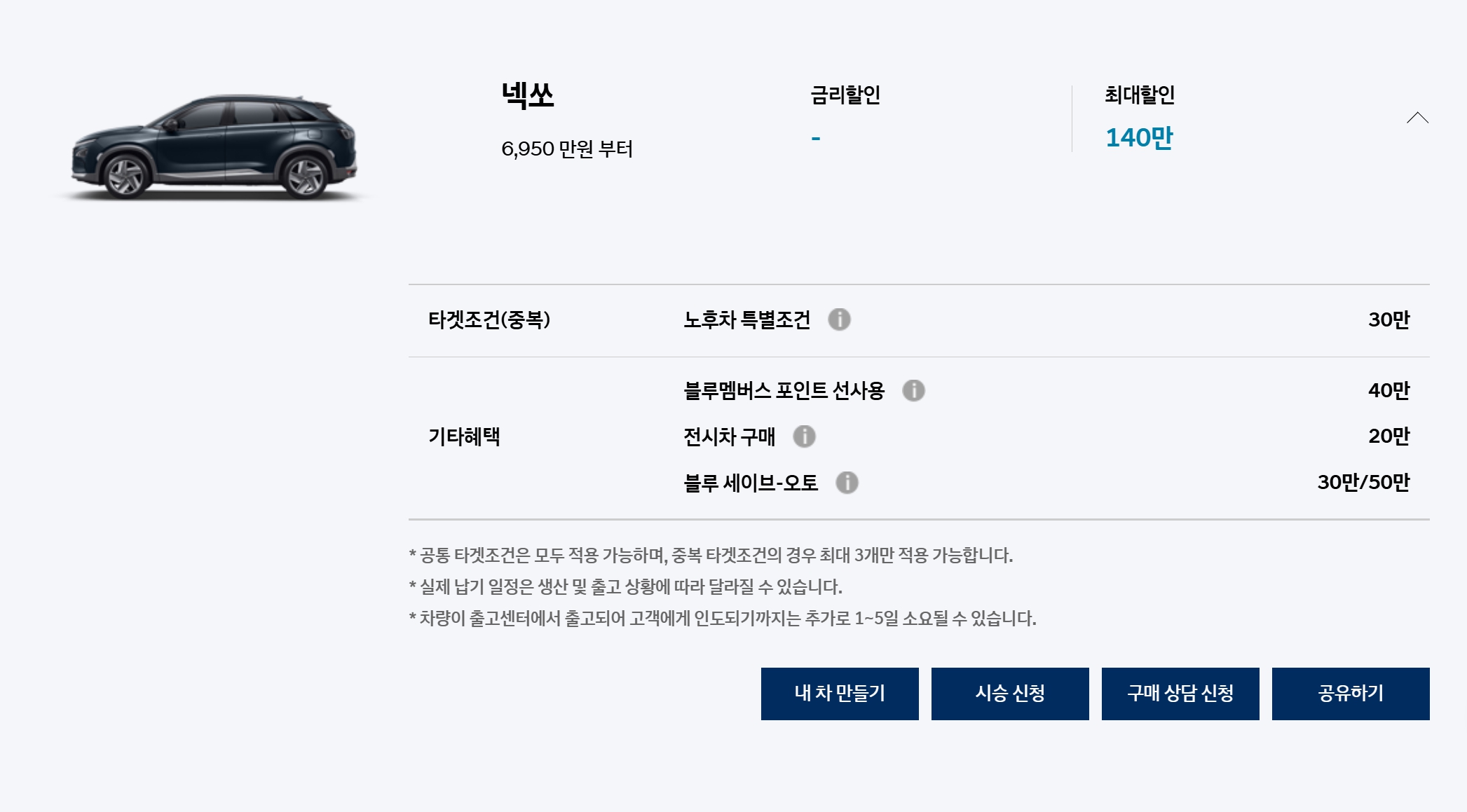 베뉴와 마찬가지로, H패밀리 조건이 사라져서 할인이 아예 없게 되었습니다.