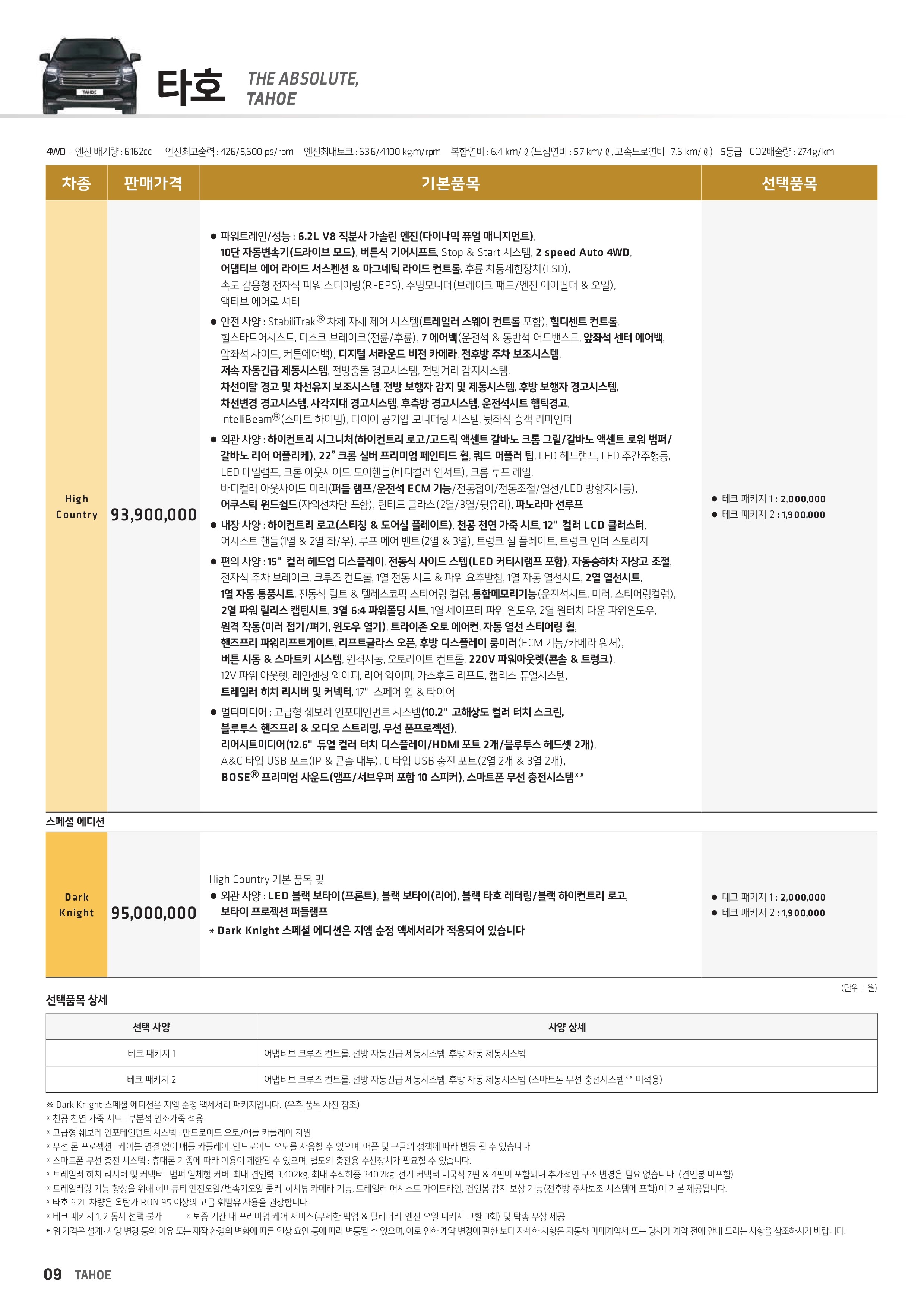 타호 가격표 및 프로모션