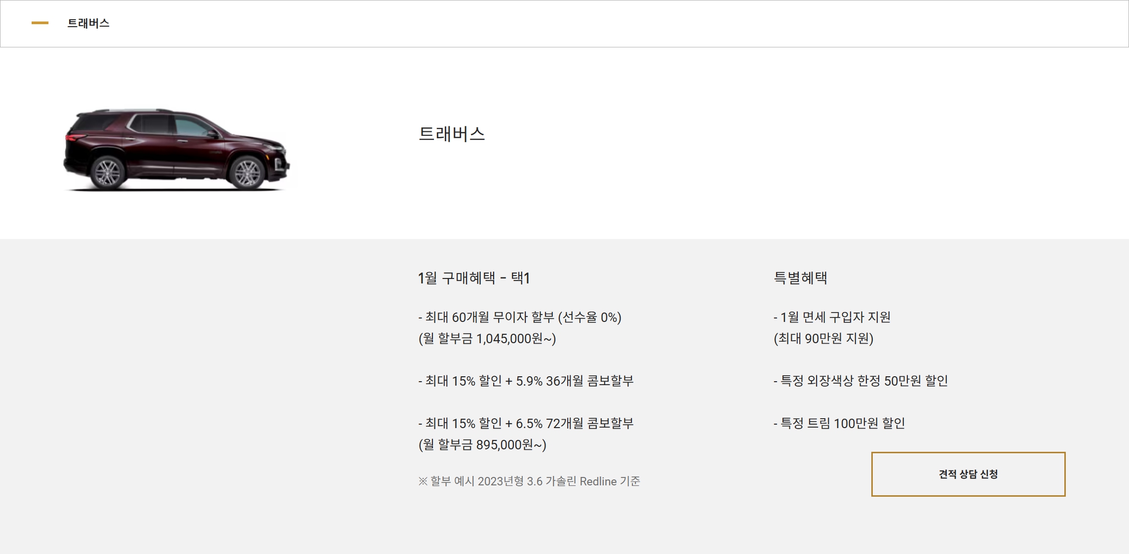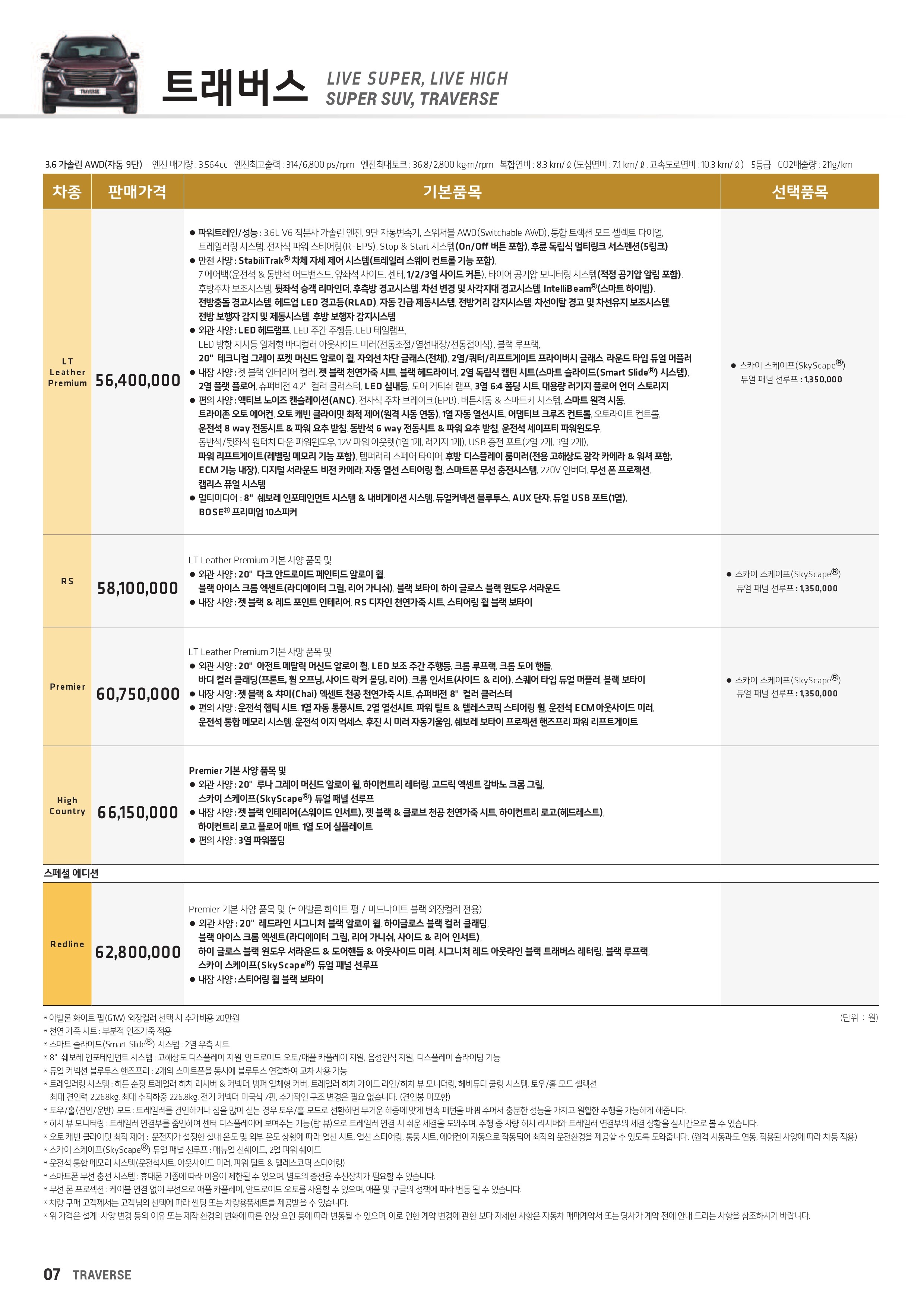 트래버스 가격표 및 프로모션