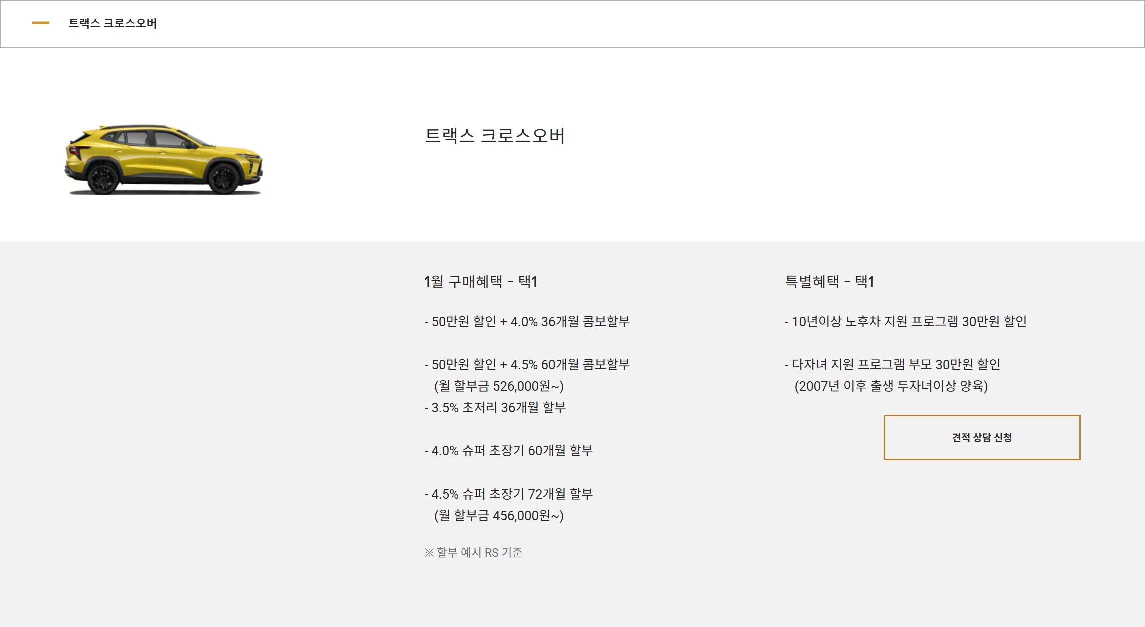 트랙스 가격표 및 프로모션