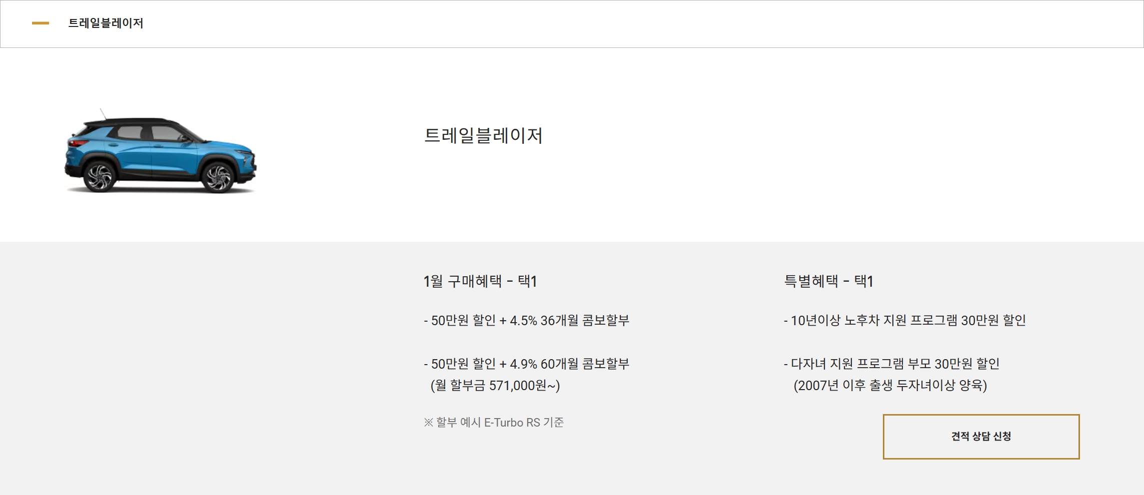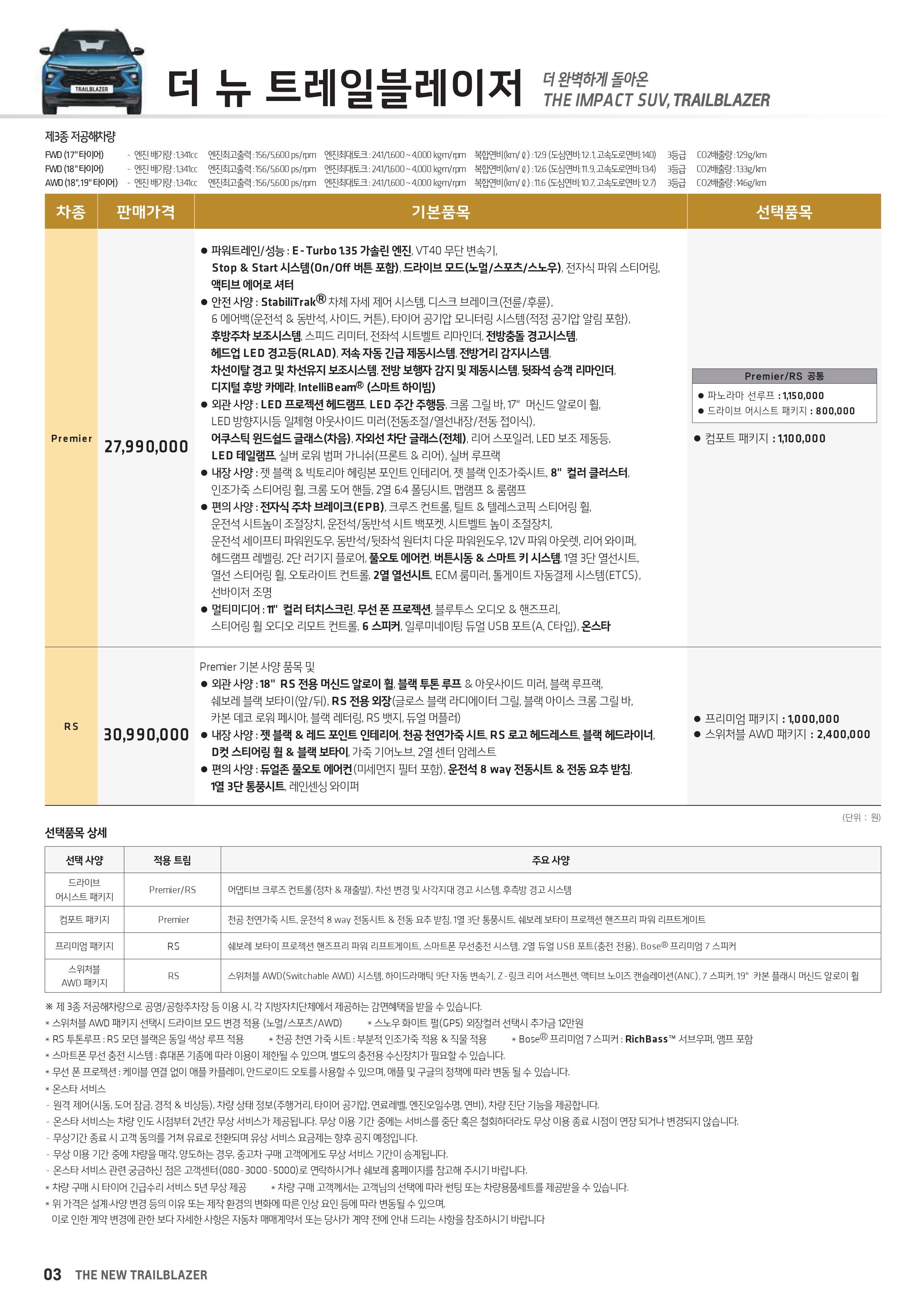 트레일블레이저 가격표 및 프로모션