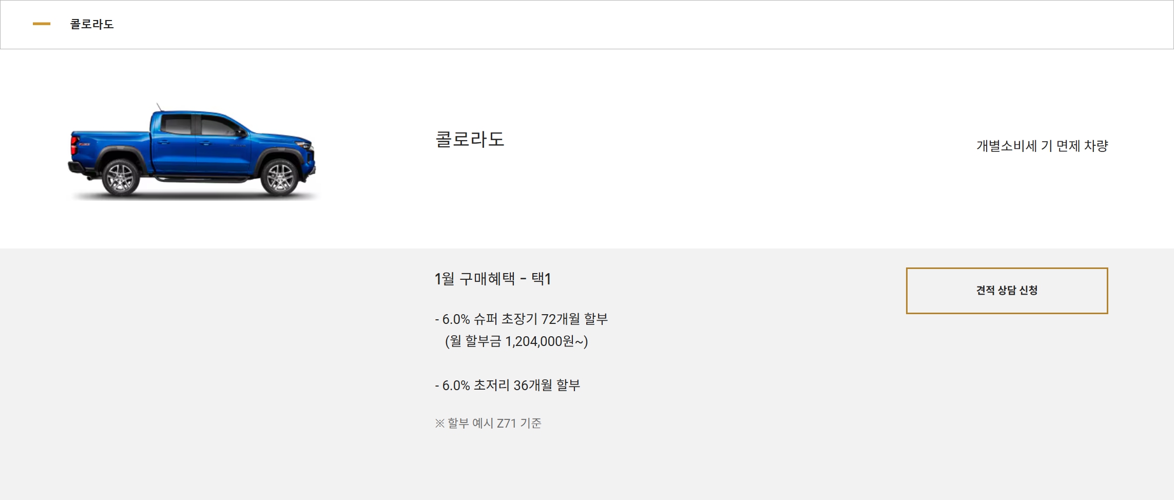콜로라도 가격표 및 프로모션