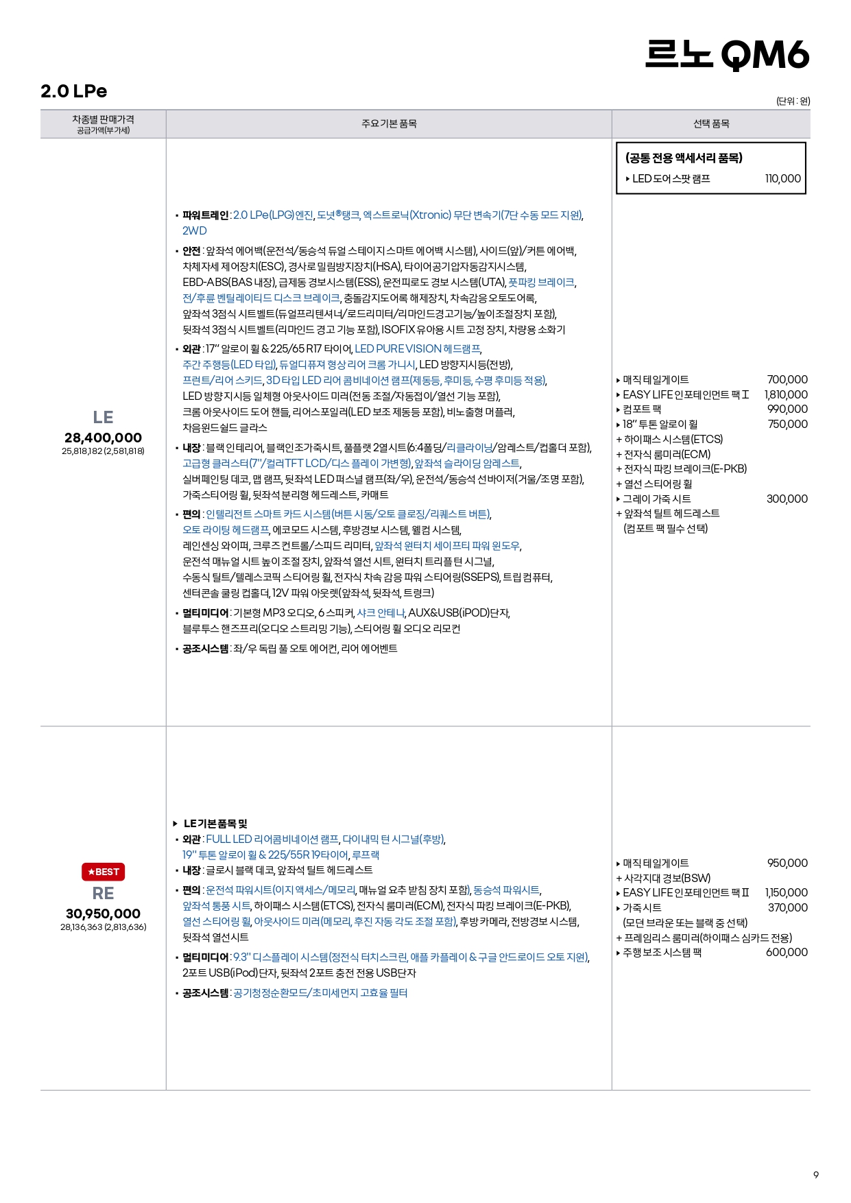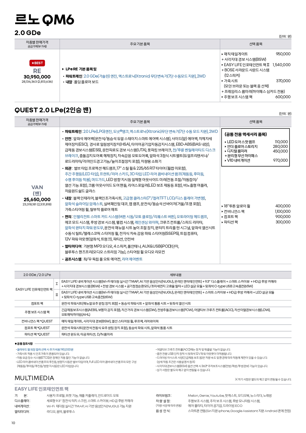 QM6와 마찬가지로 가격은 변함이 없고요.