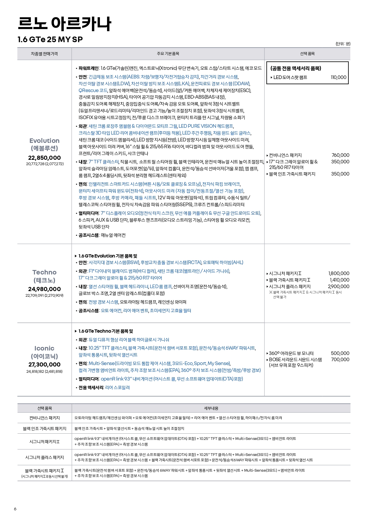 그리고! 아르카나 1.6 자연흡기 모델 또한 가격 자체는 그대로이지만, 옵션 구성이 살짝 변경된 점 참고 부탁드립니다.