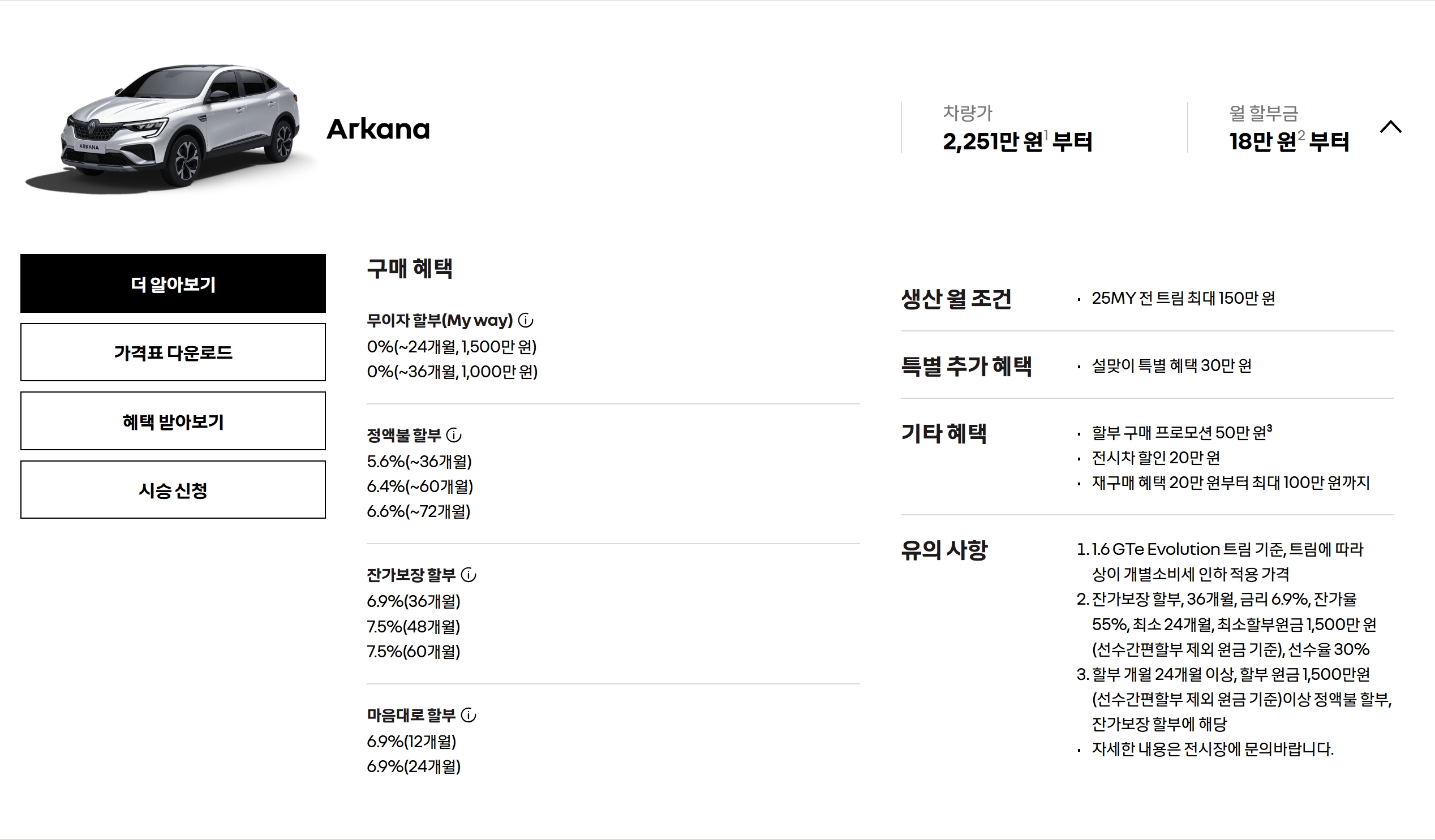 아르카나 가격표 및 프로모션
