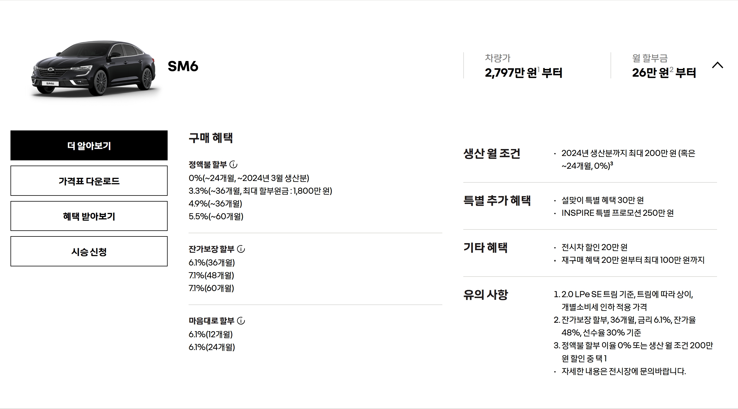 다만, 현시점에서 이정도 할인으로 SM6를 사실 분들은 거의 없지 않을까 싶습니다.