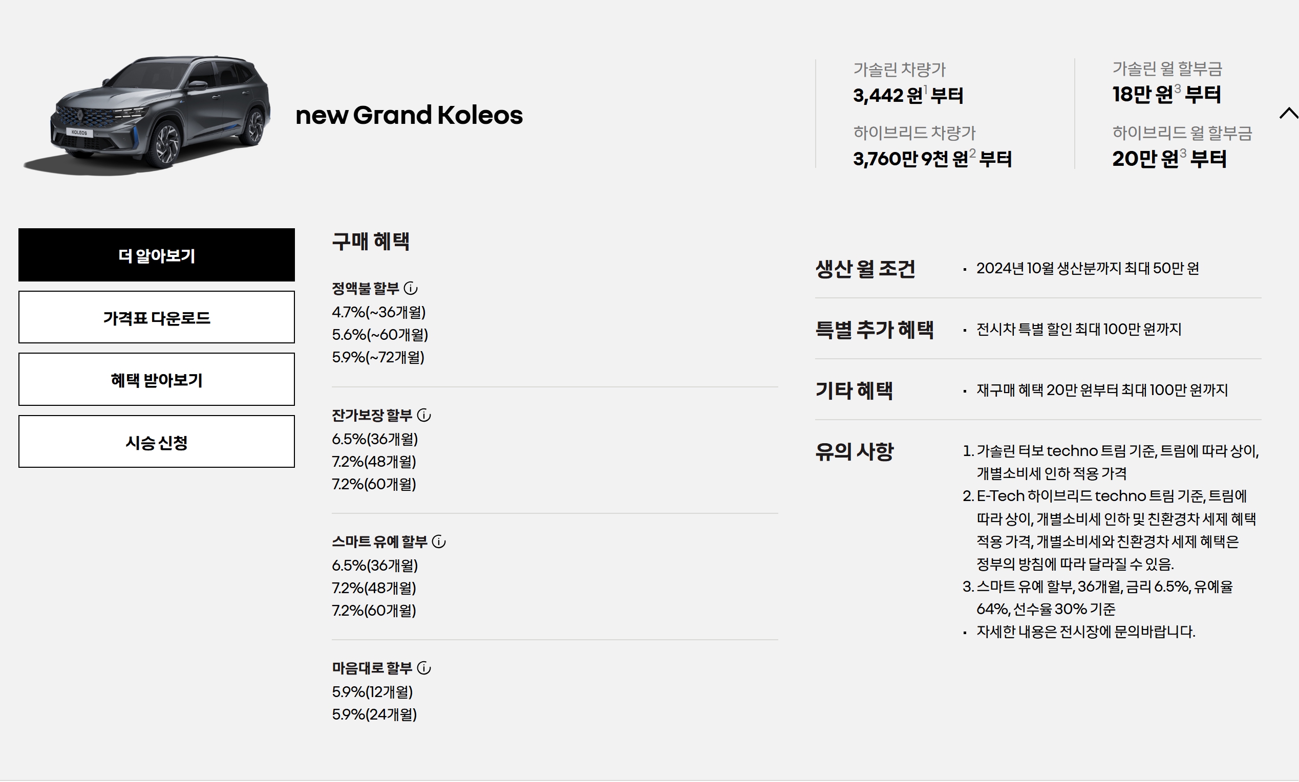 그랑 콜레오스 가격표 및 프로모션