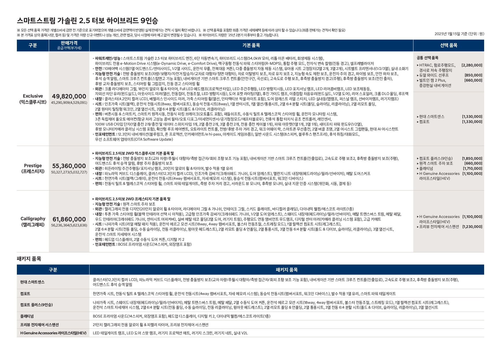 다음은 팰리세이드 하이브리드 가격표 입니다.
