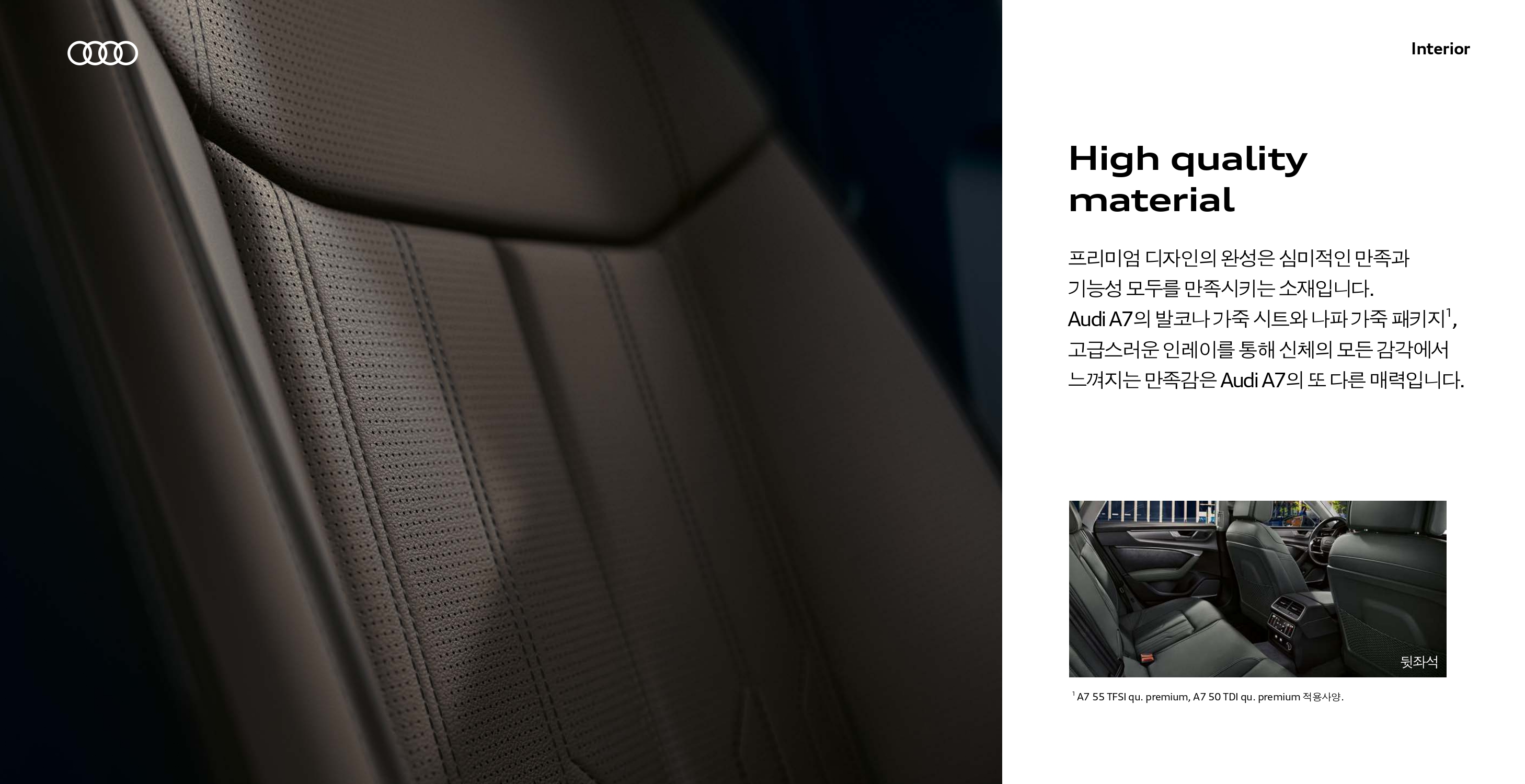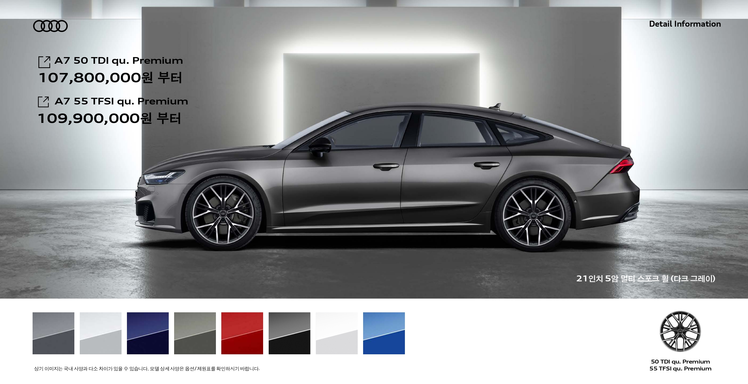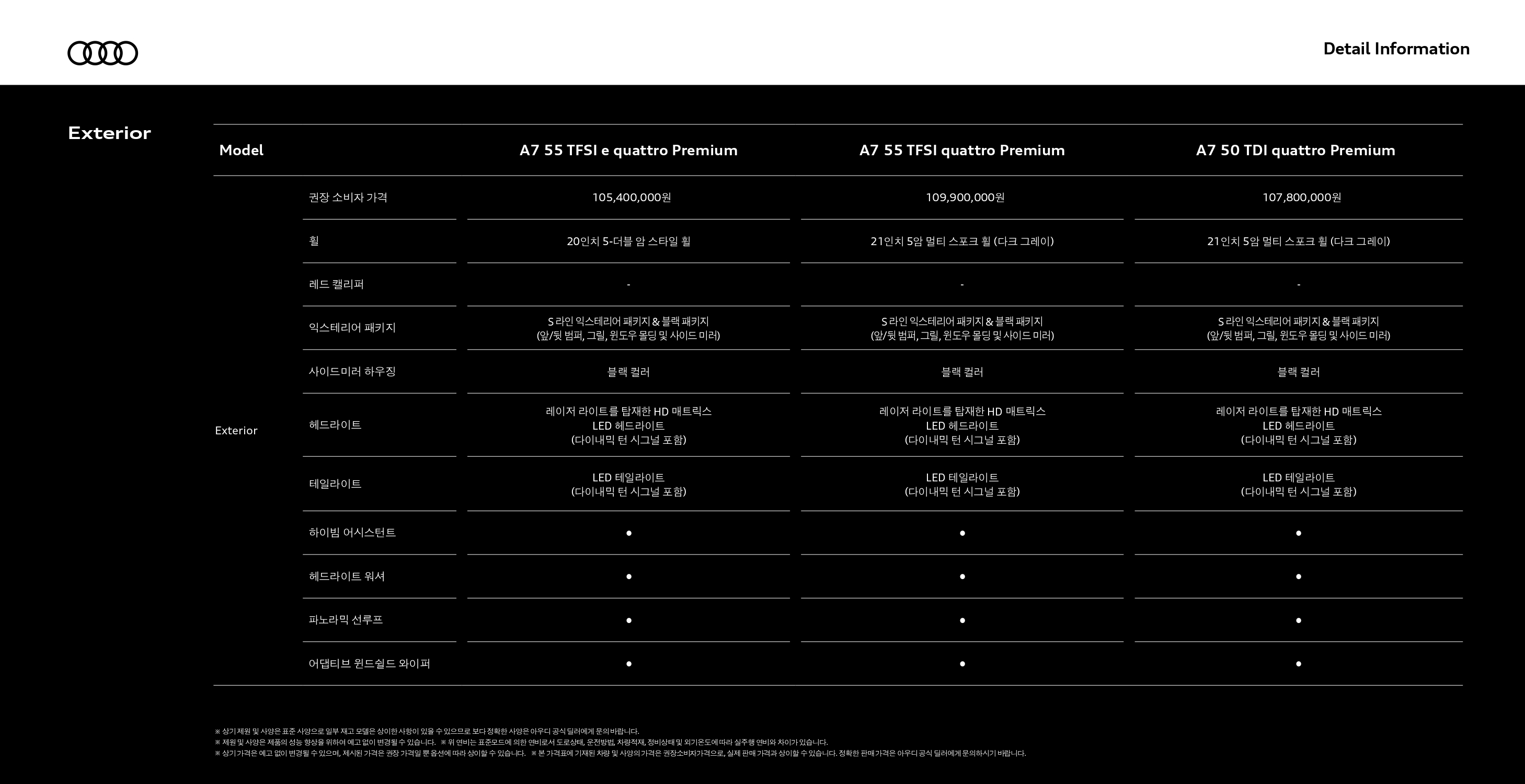A7의 경우, 모델 자체가 고가이기 때문에, 타 아우디 라인업처럼 컴포트와 프리미엄으로 나누어져 있는 건 아니고, 전부 프리미엄 사양입니다.