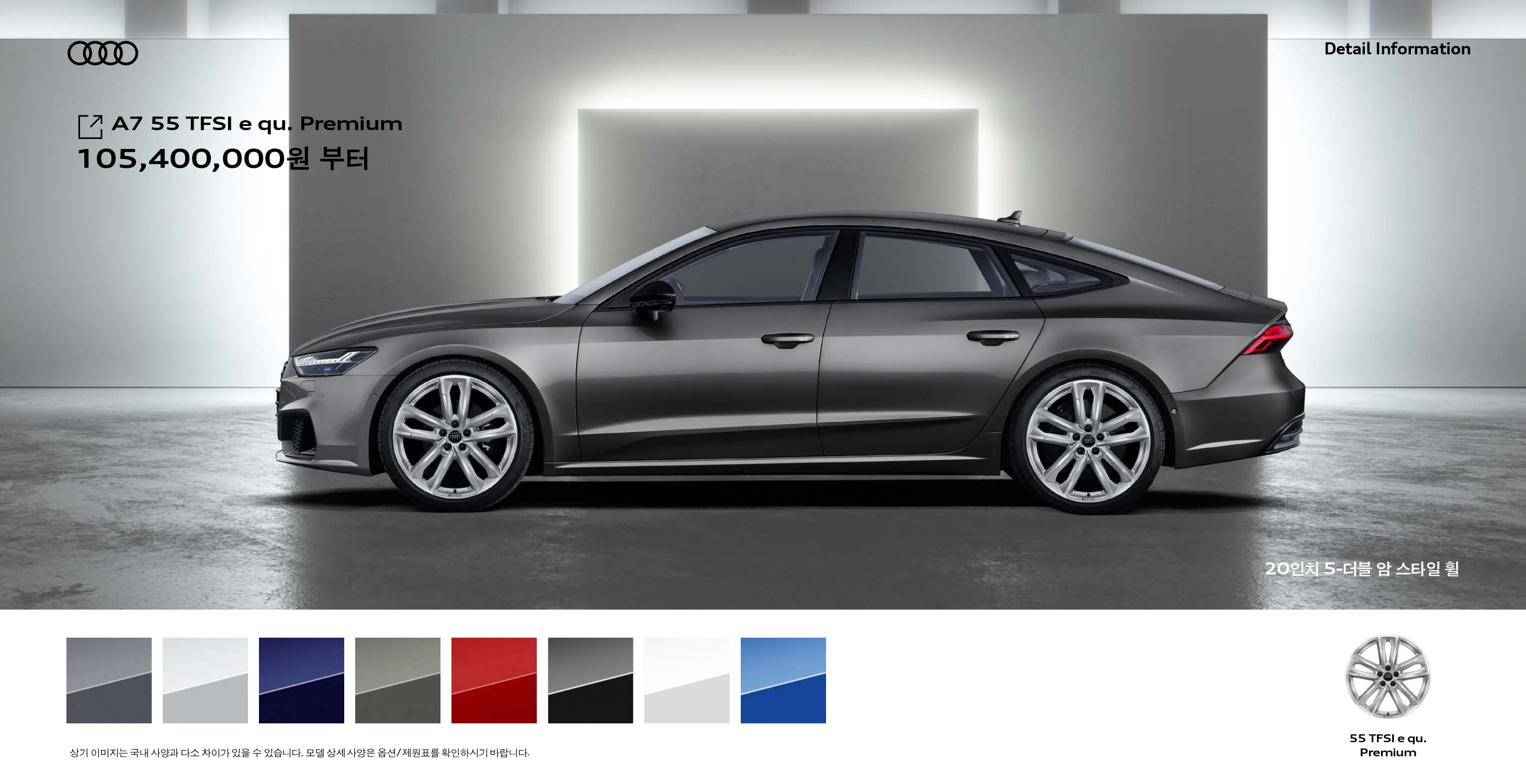 플러그인 하이브리드(PHEV) 사양인 A7 55TFSIe 의 경우에는 기존과 휠이 동일합니다.