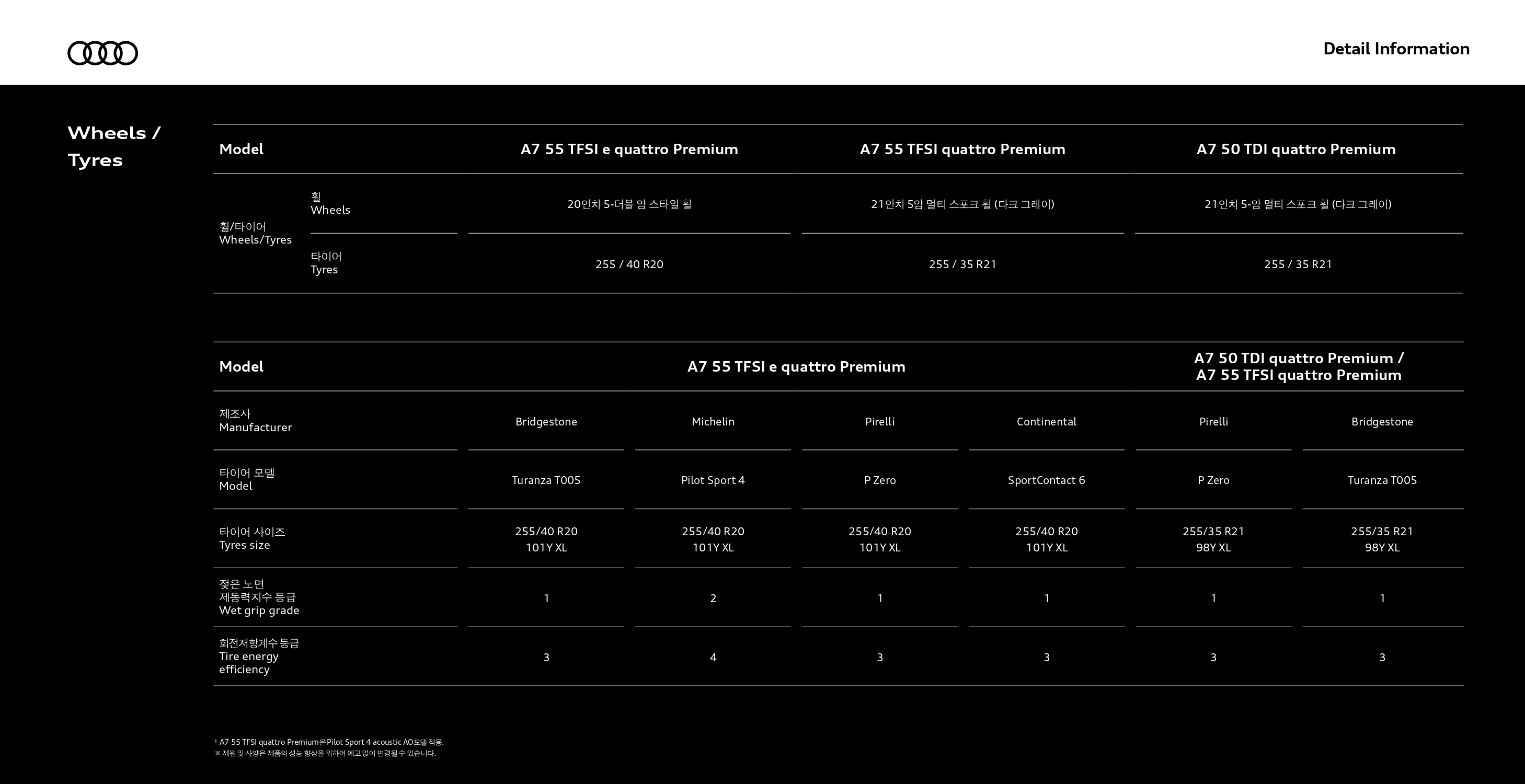 대표적으로 앞서 말씀드린 21인치 휠이 50TDI 만 55TFSI에만 적용이 되고요.