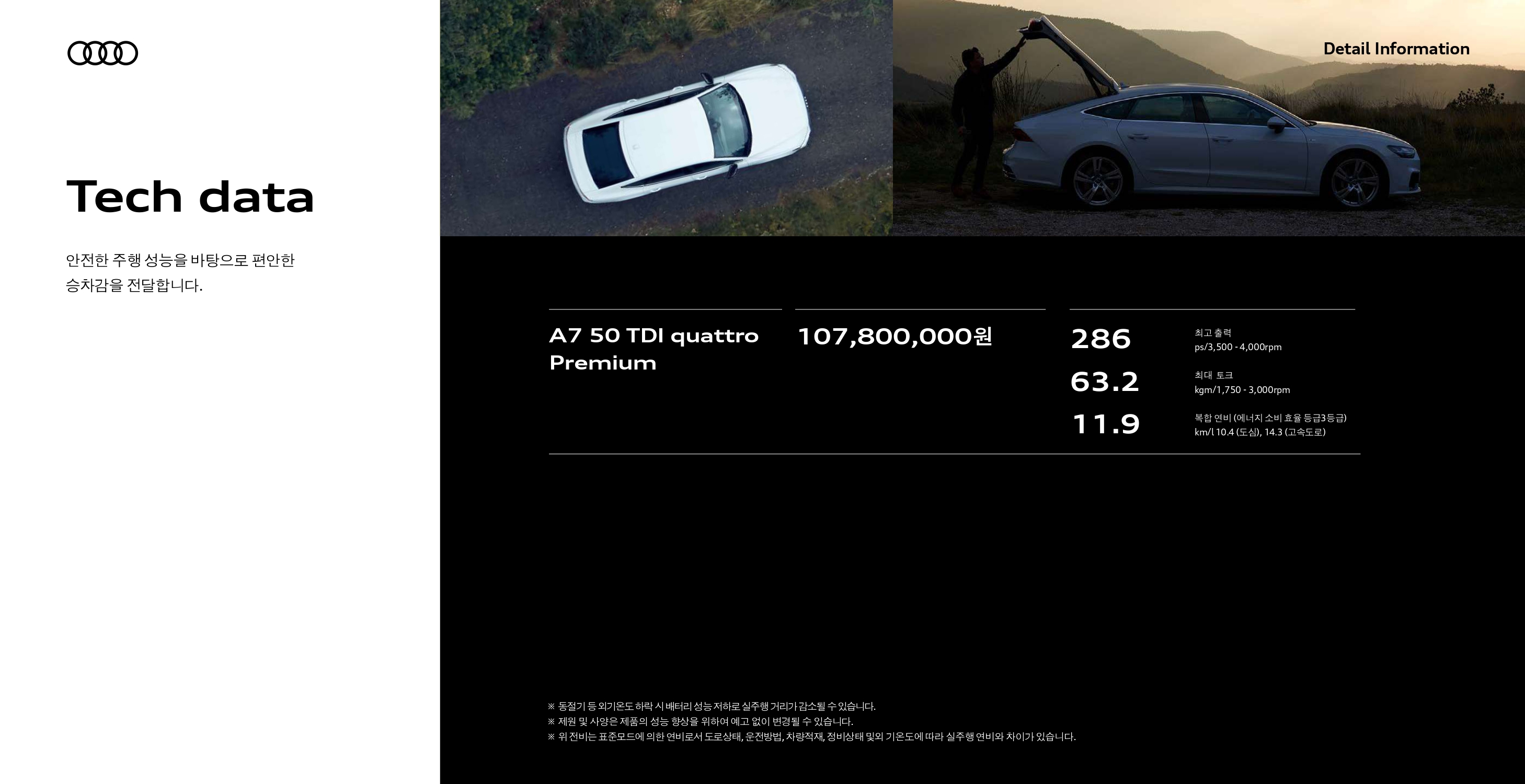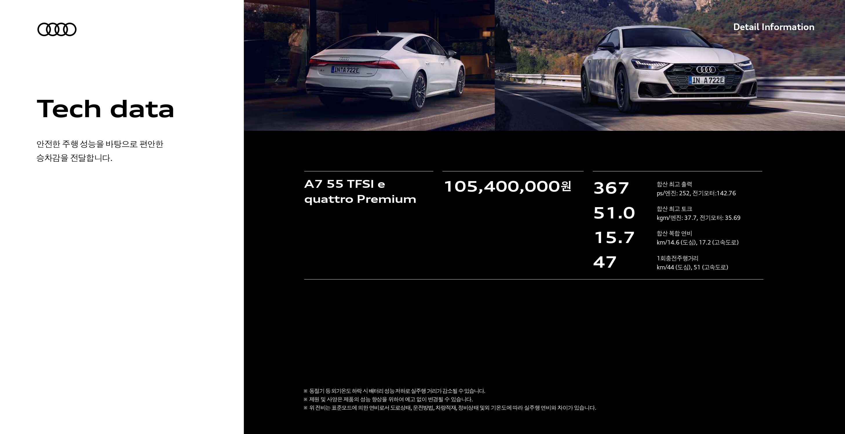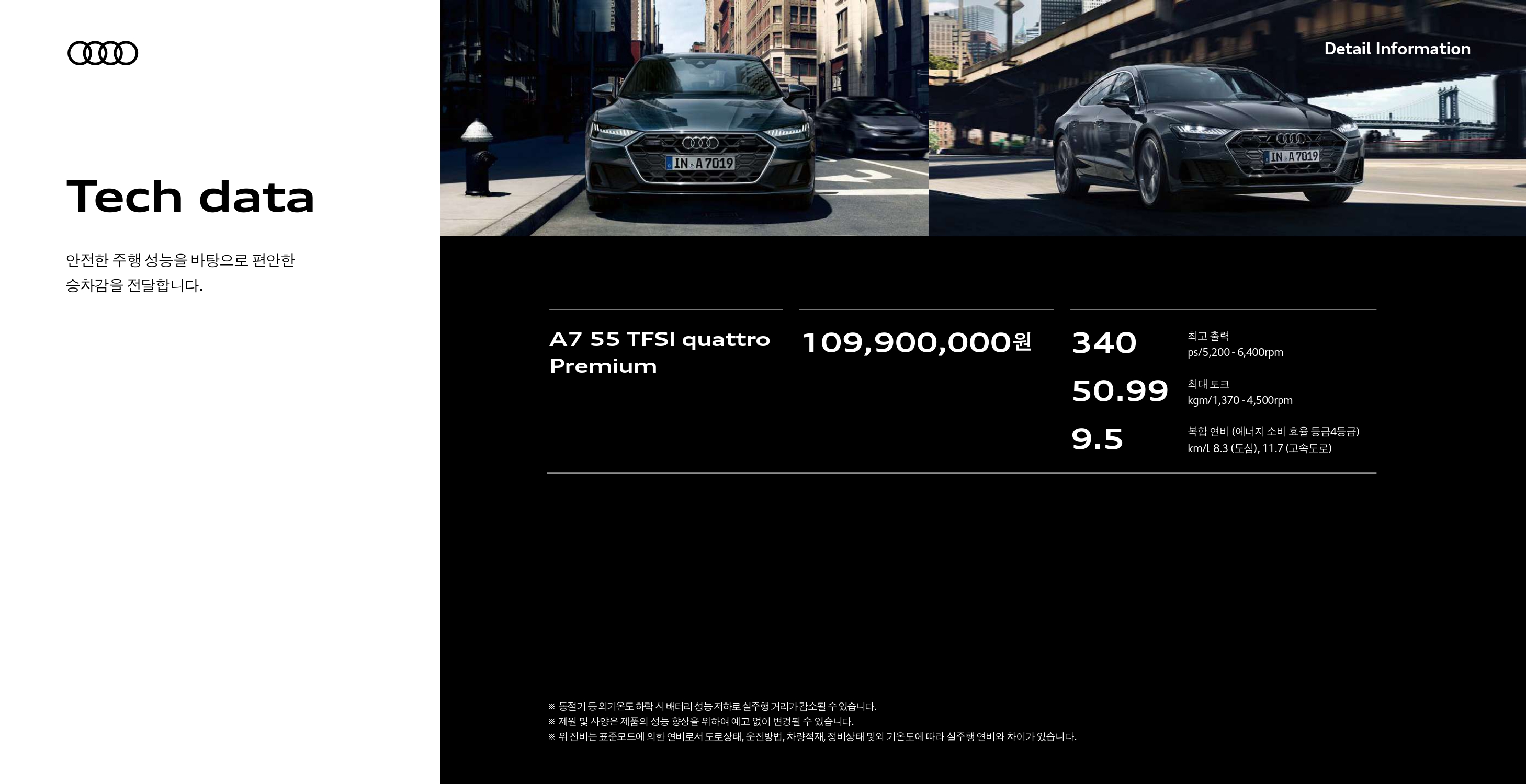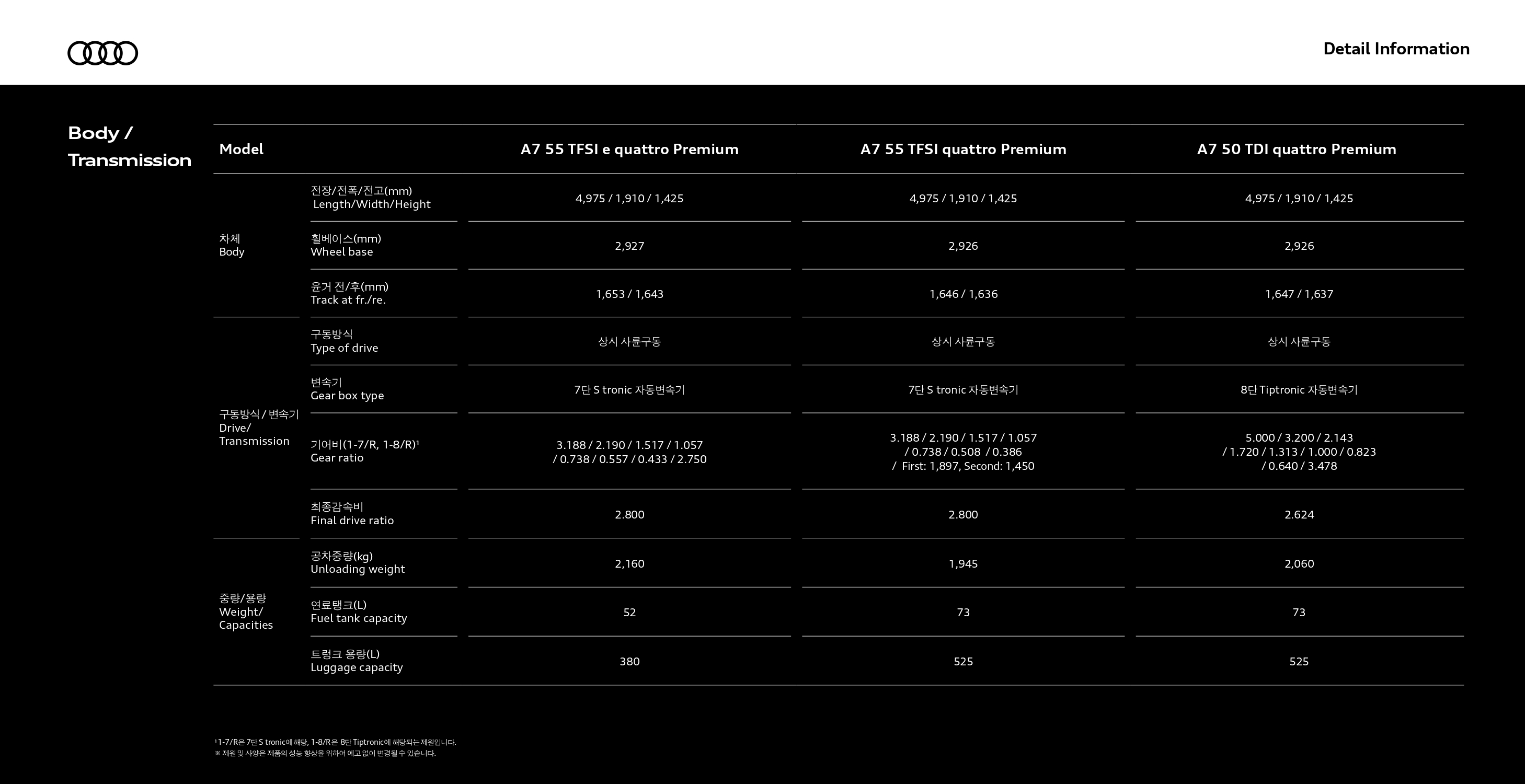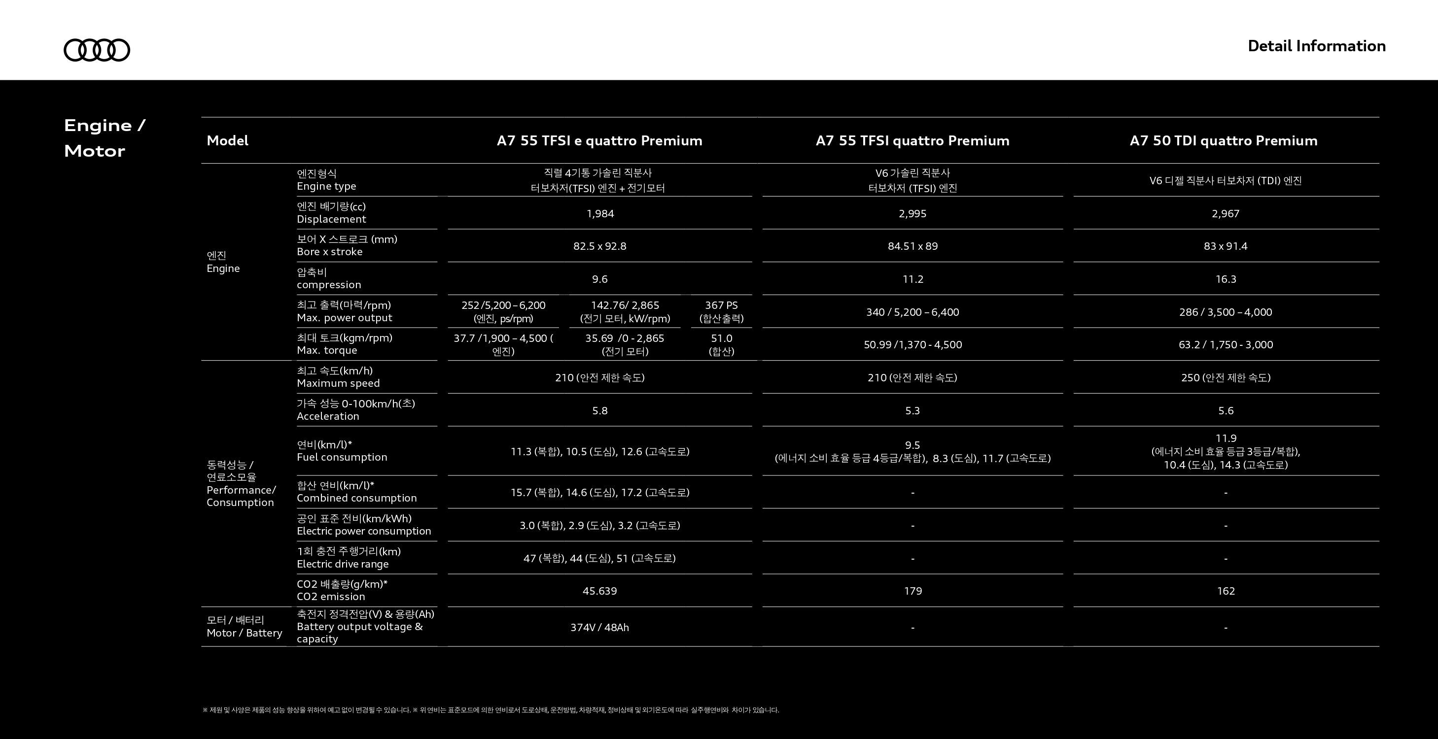 국내 수입되는 A7 3종은 파워트레인이 모두 다릅니다.