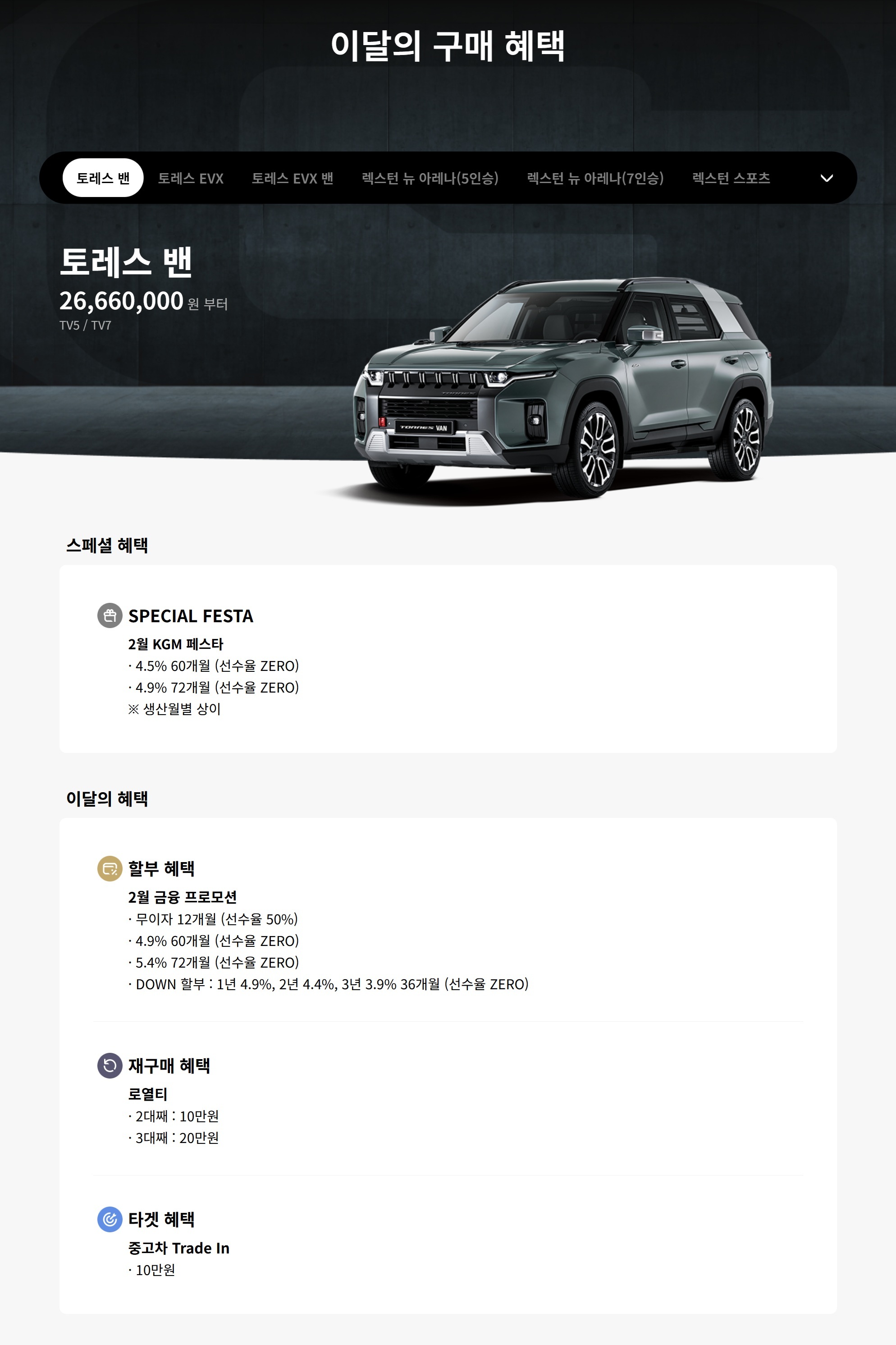 제가 매달 프로모션 소개를 하고 있는데, 이 정도면 토레스 치고는 정말 괜찮은 할인이 아닐까 싶네요.