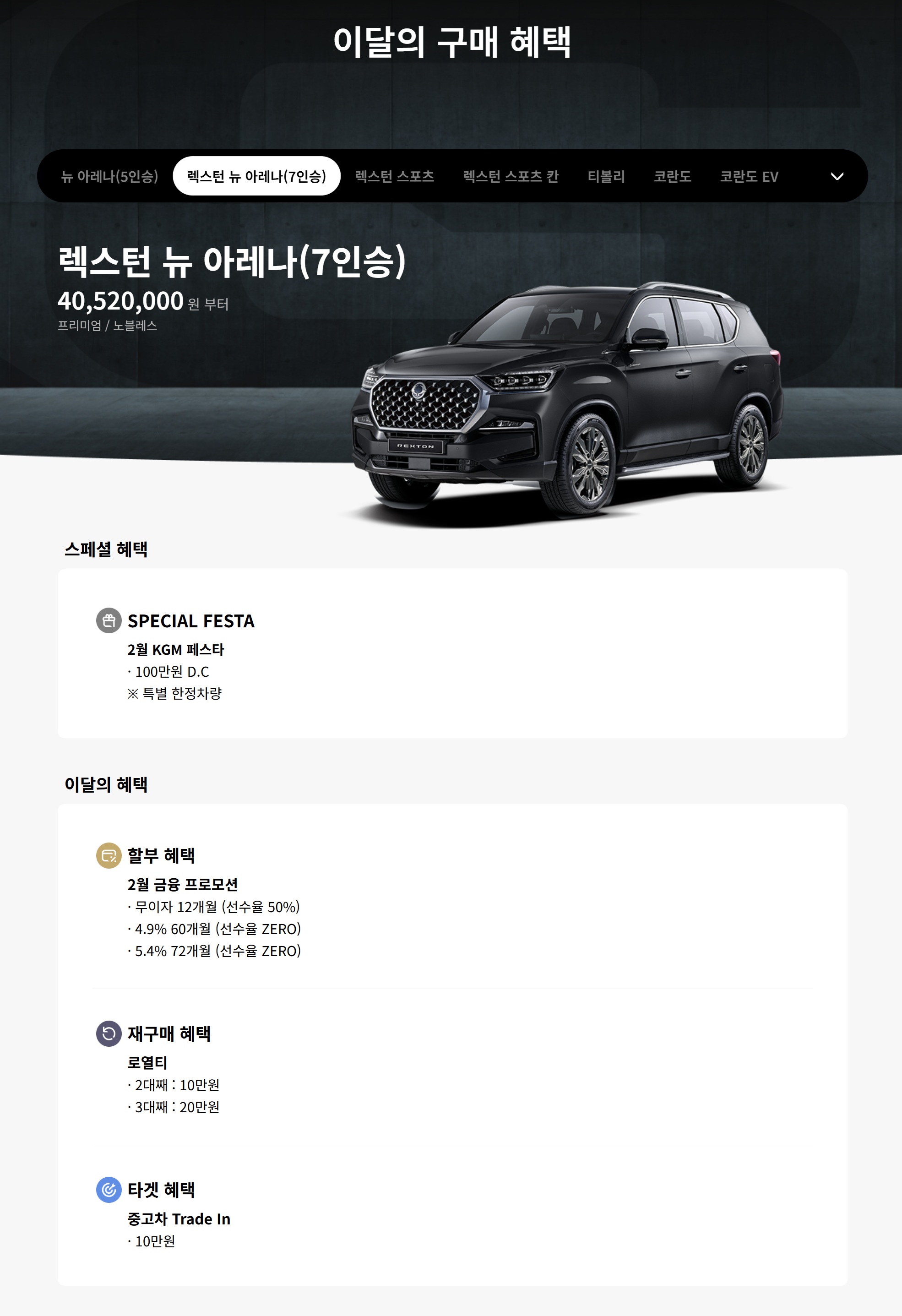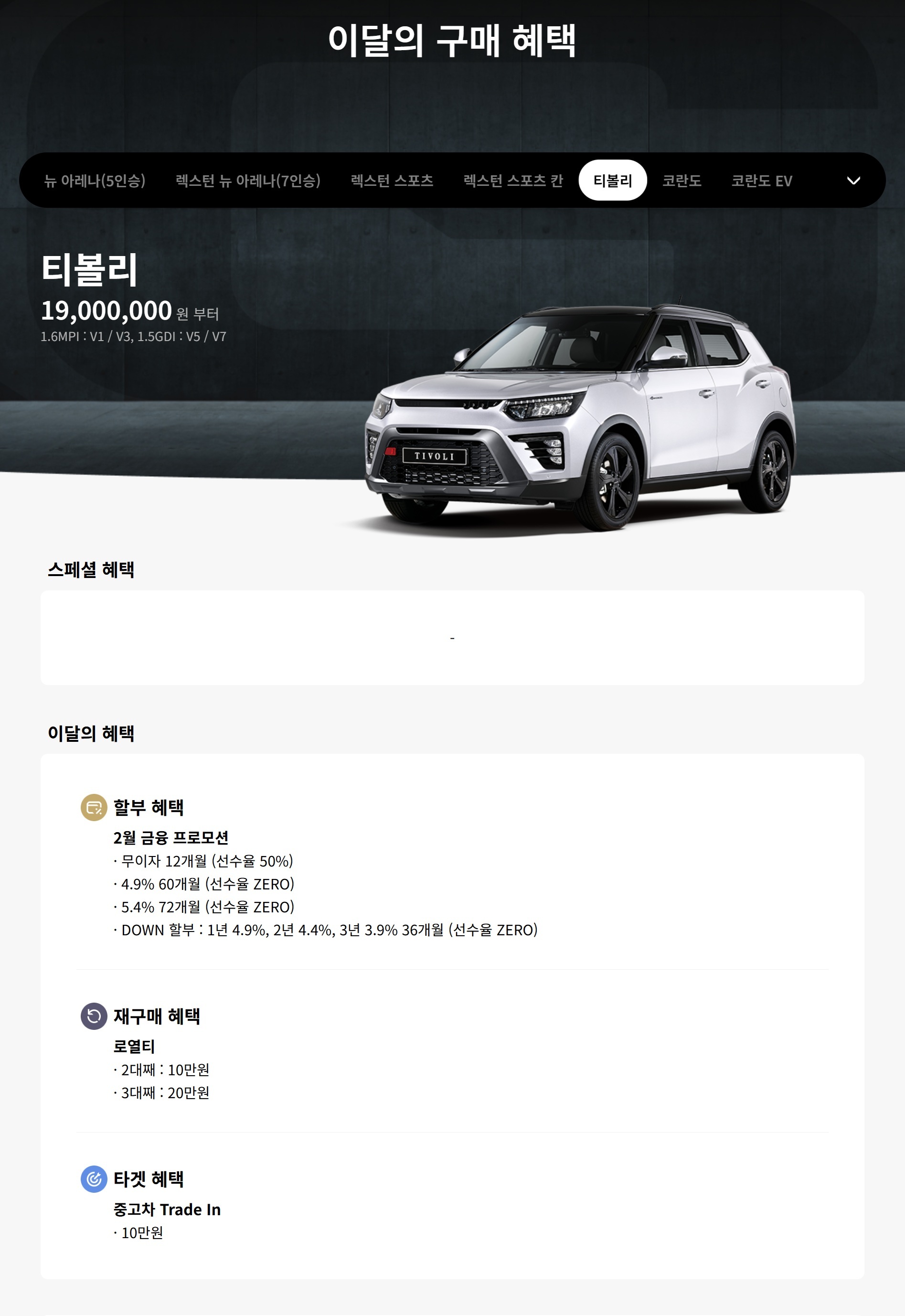작년 어느 순간부터, KG모빌리티에서 티볼리를 포기하였는지, 계속 프로모션이 약하거나 없습니다.
