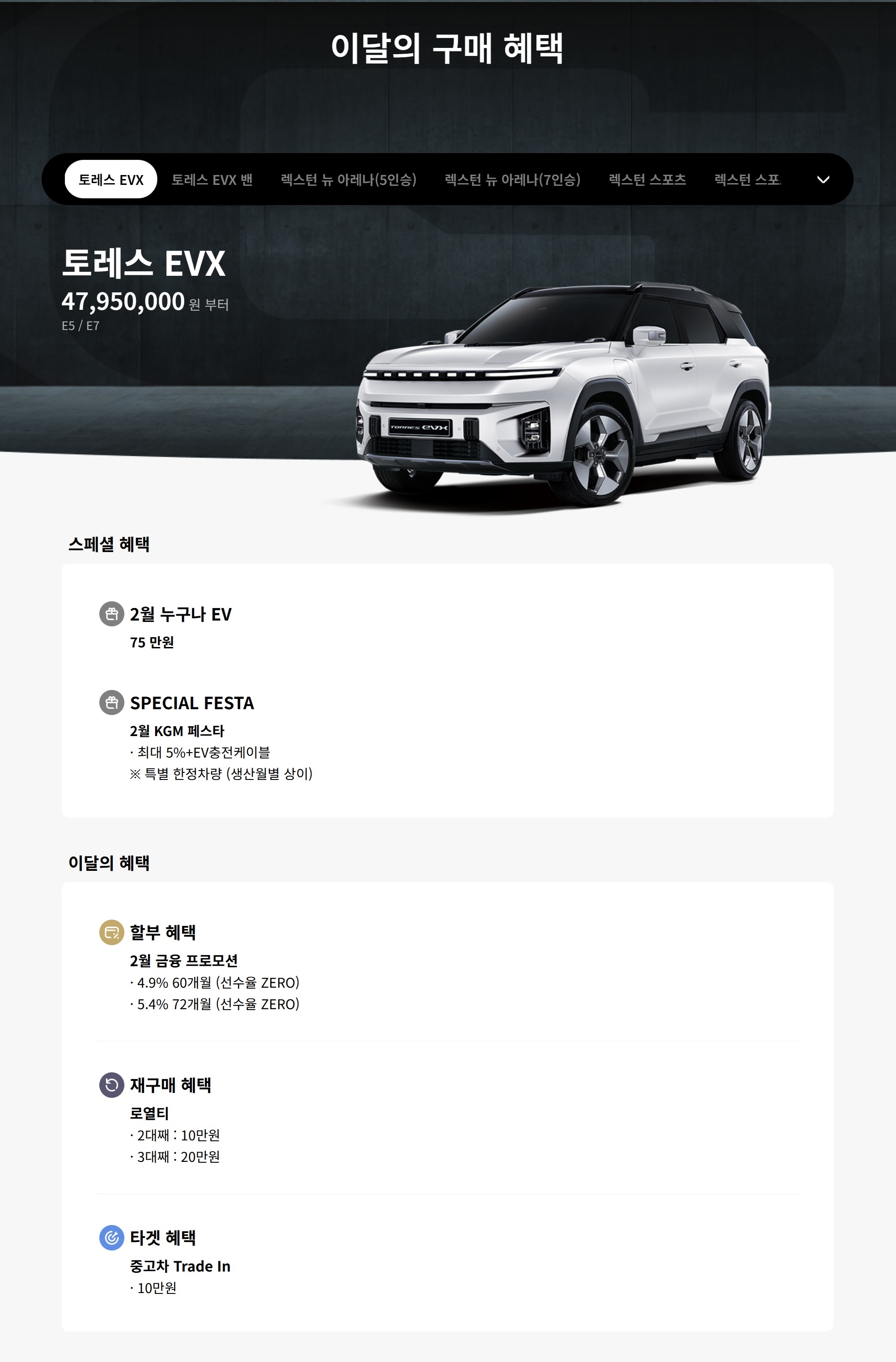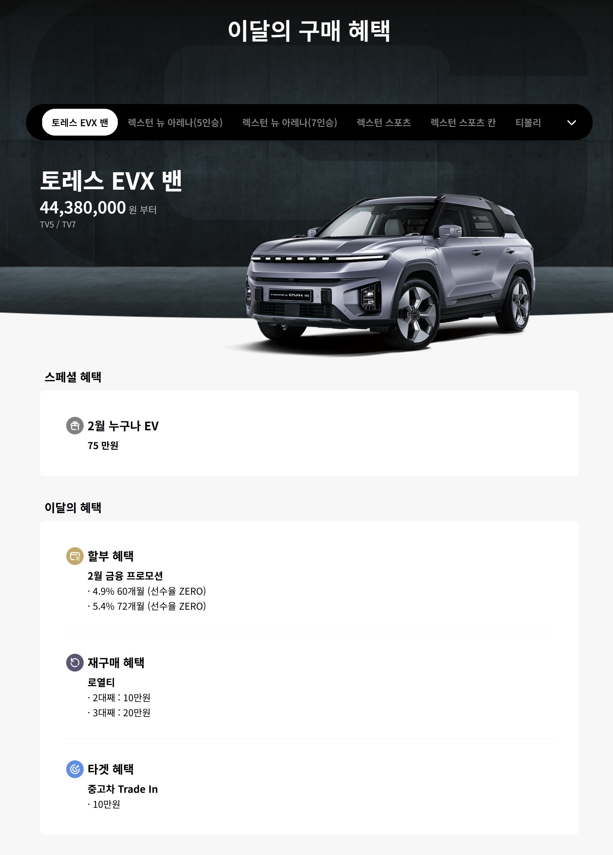 누구나 EV 75만원 할인이 전부입니다.