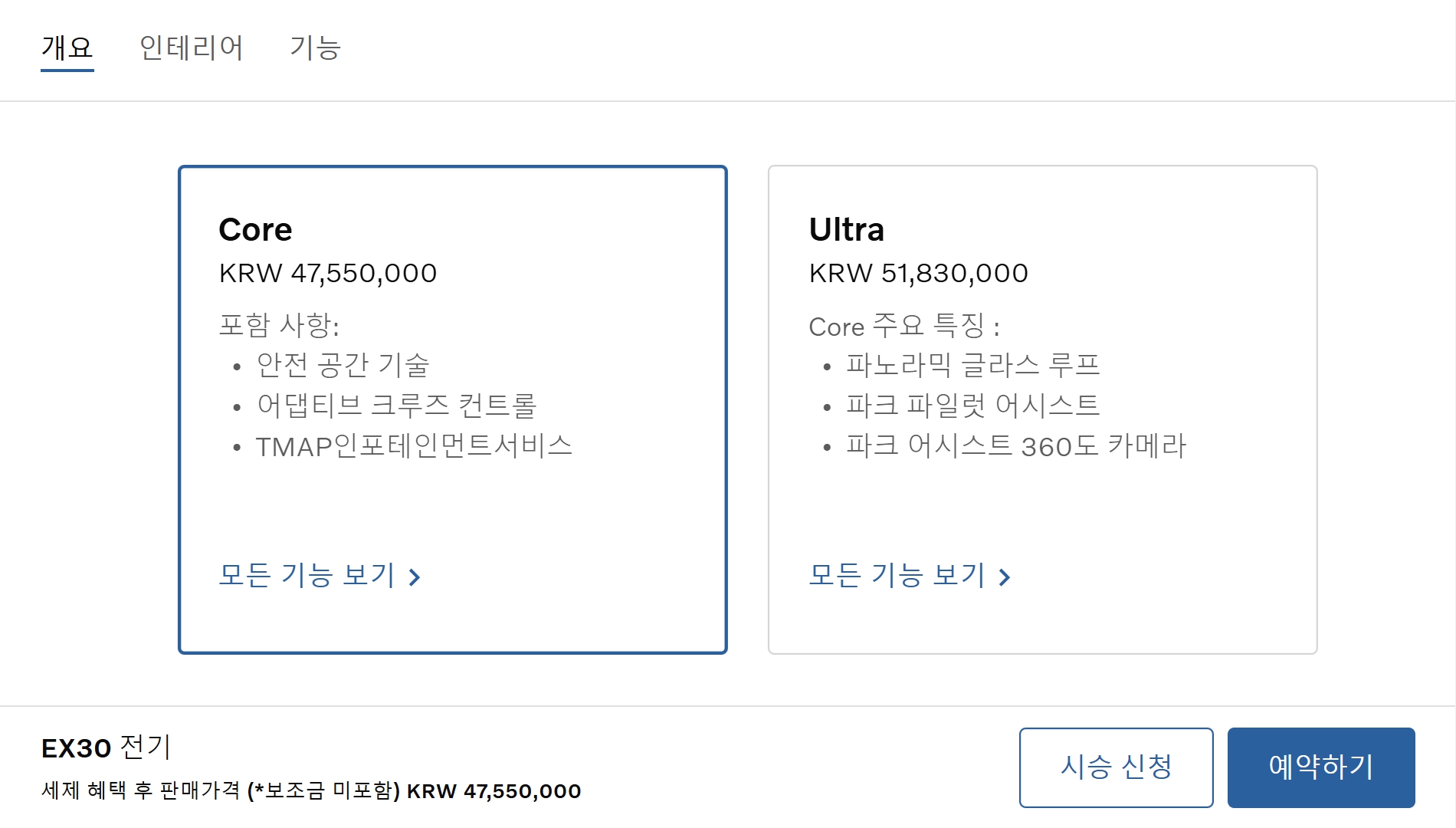 EX30은 단일 파워트레인 사양으로 출시가 되기 때문에, 가격 차이는 전적으로 옵션에 따라 결정됩니다.