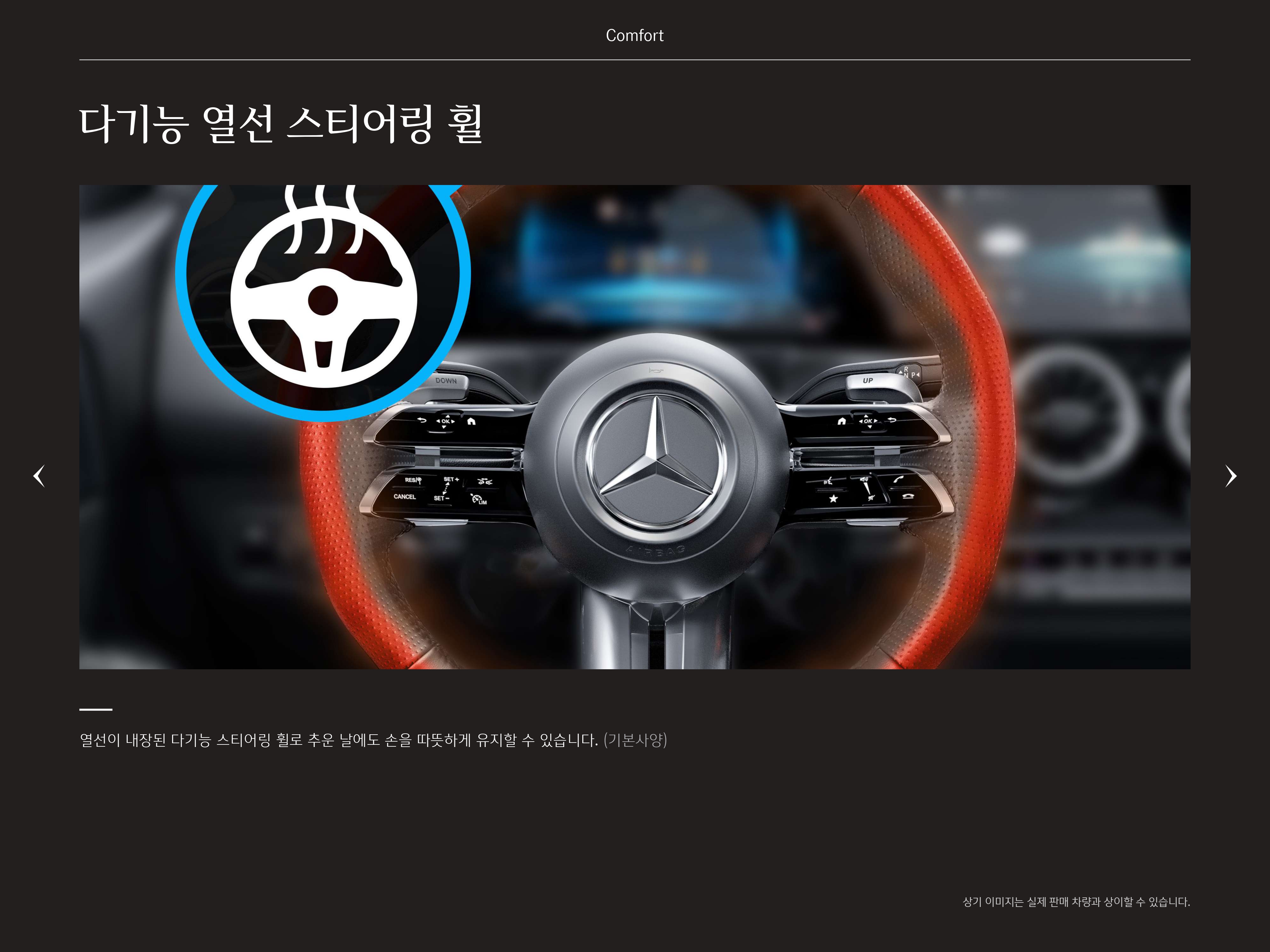 AMG 라인의 경우, 24년식에는 열선 기능이 지원되지 않았지만, 25년식 부터는 열선 기능이 지원됩니다.