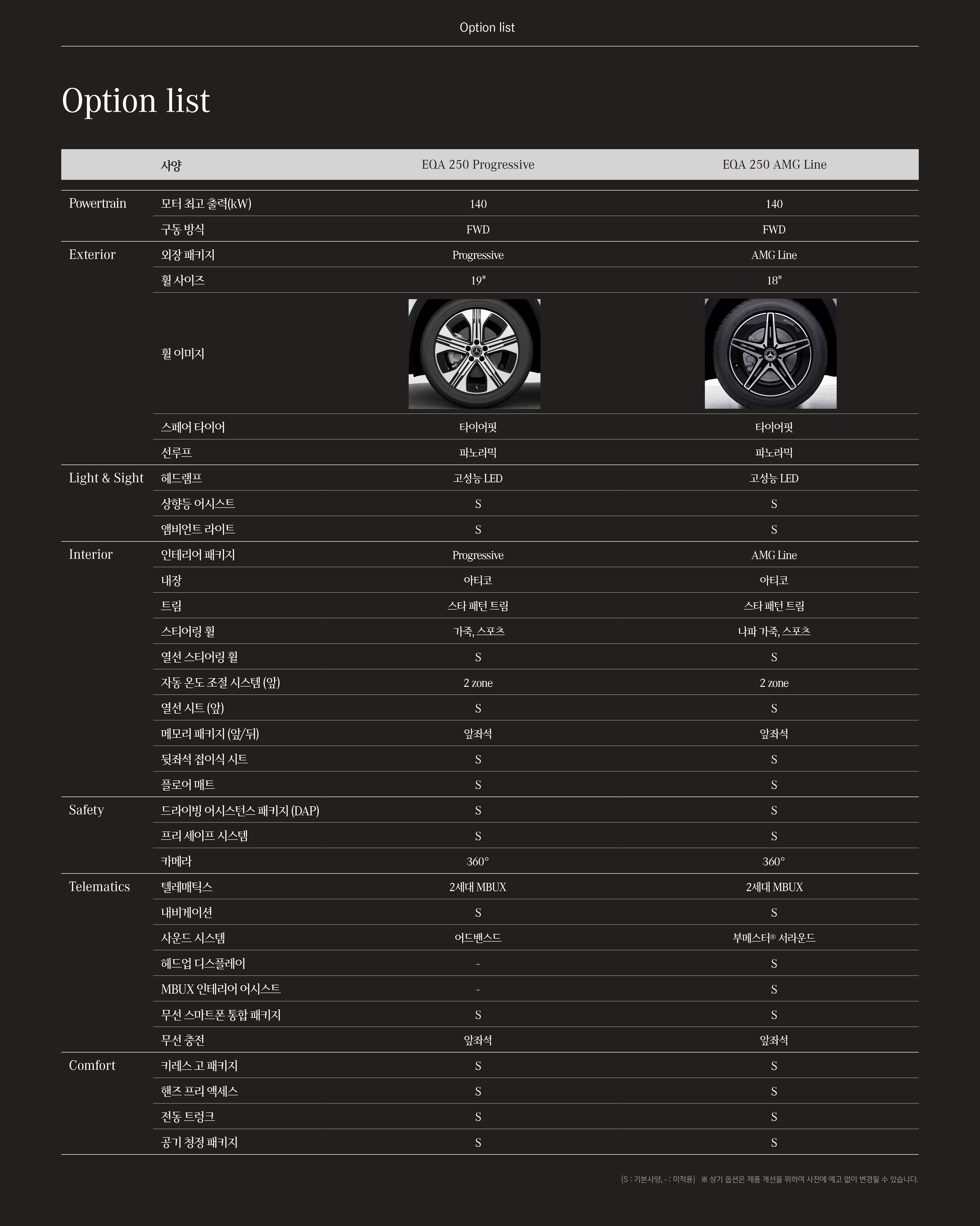 ▼ 2025 벤츠 EQA 옵션표 ▼