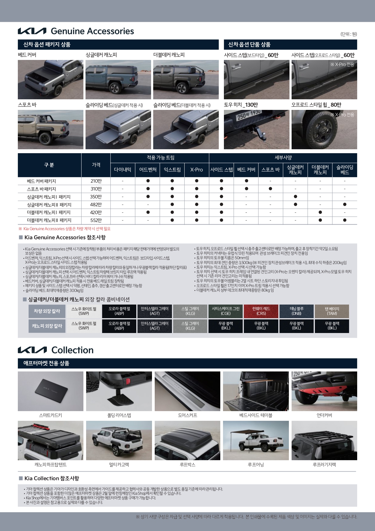 마지막으로 픽업 트럭을 구매하시는 분들께서 정말 중요하게 보시는 신차 옵션 패키지 상품 가격표입니다.