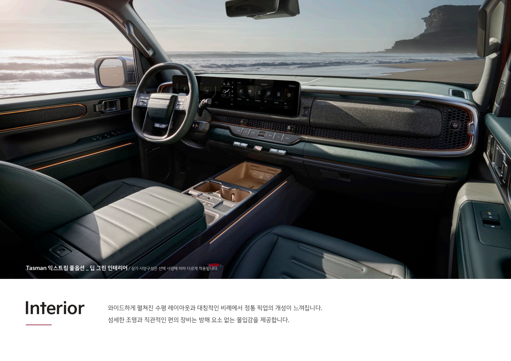 타스만은 크게 아래와 같이 두 가지 테마로 차량이 구성되어져 있습니다.