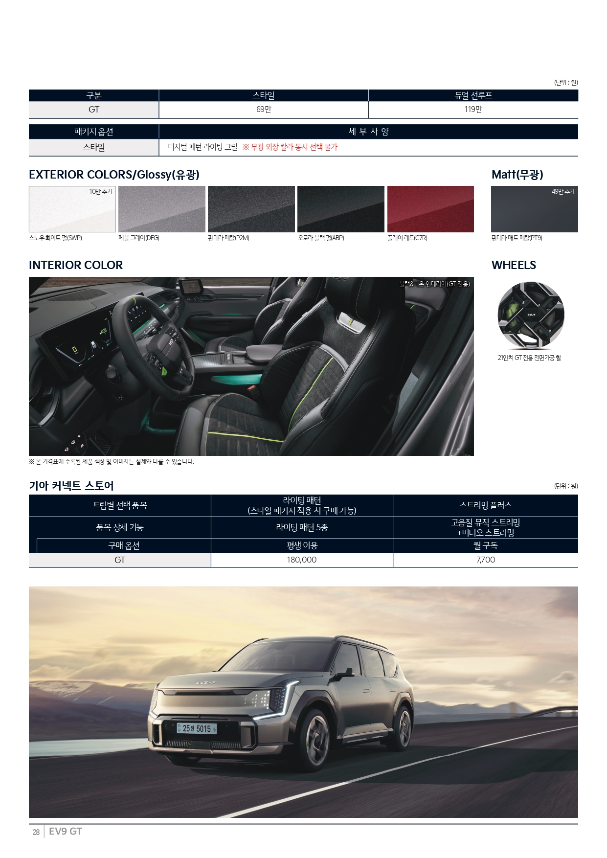 그리고! EV6에만 존재하던 고성능 라인업인 GT를 적용하여, EV9 GT 또한 출시하였습니다.