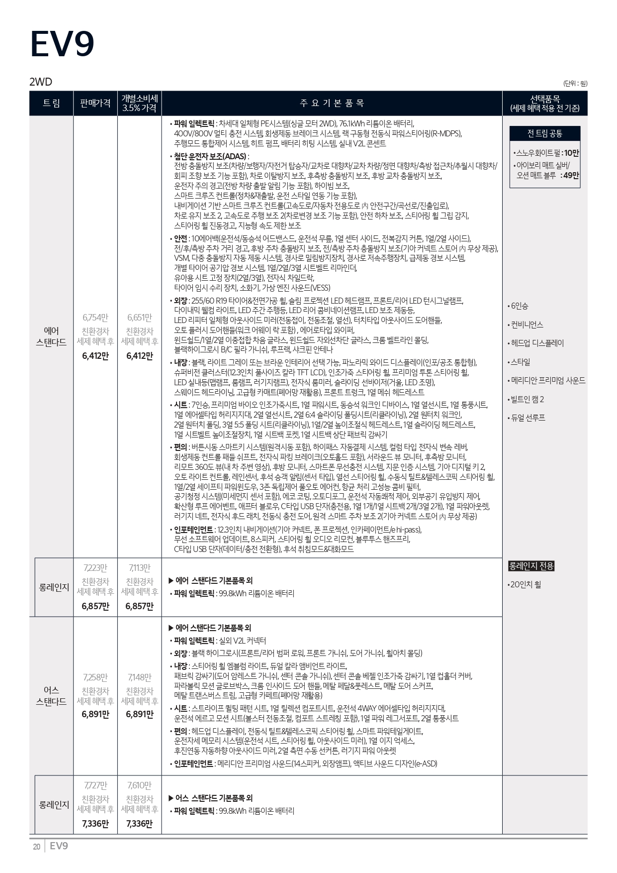 아래는 2025 기아 EV9 가격표 및 카탈로그 이며, 필요하신 분께서는 받아 가시기 바랍니다.