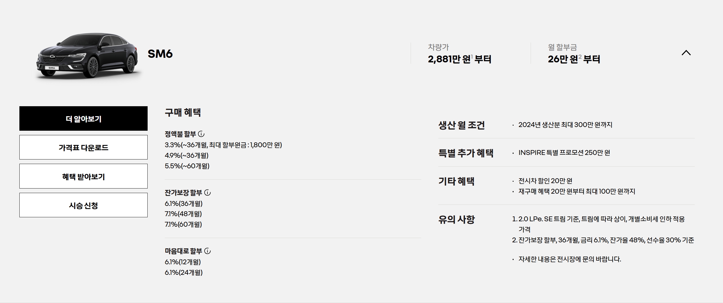 SM6 가격표 및 할인