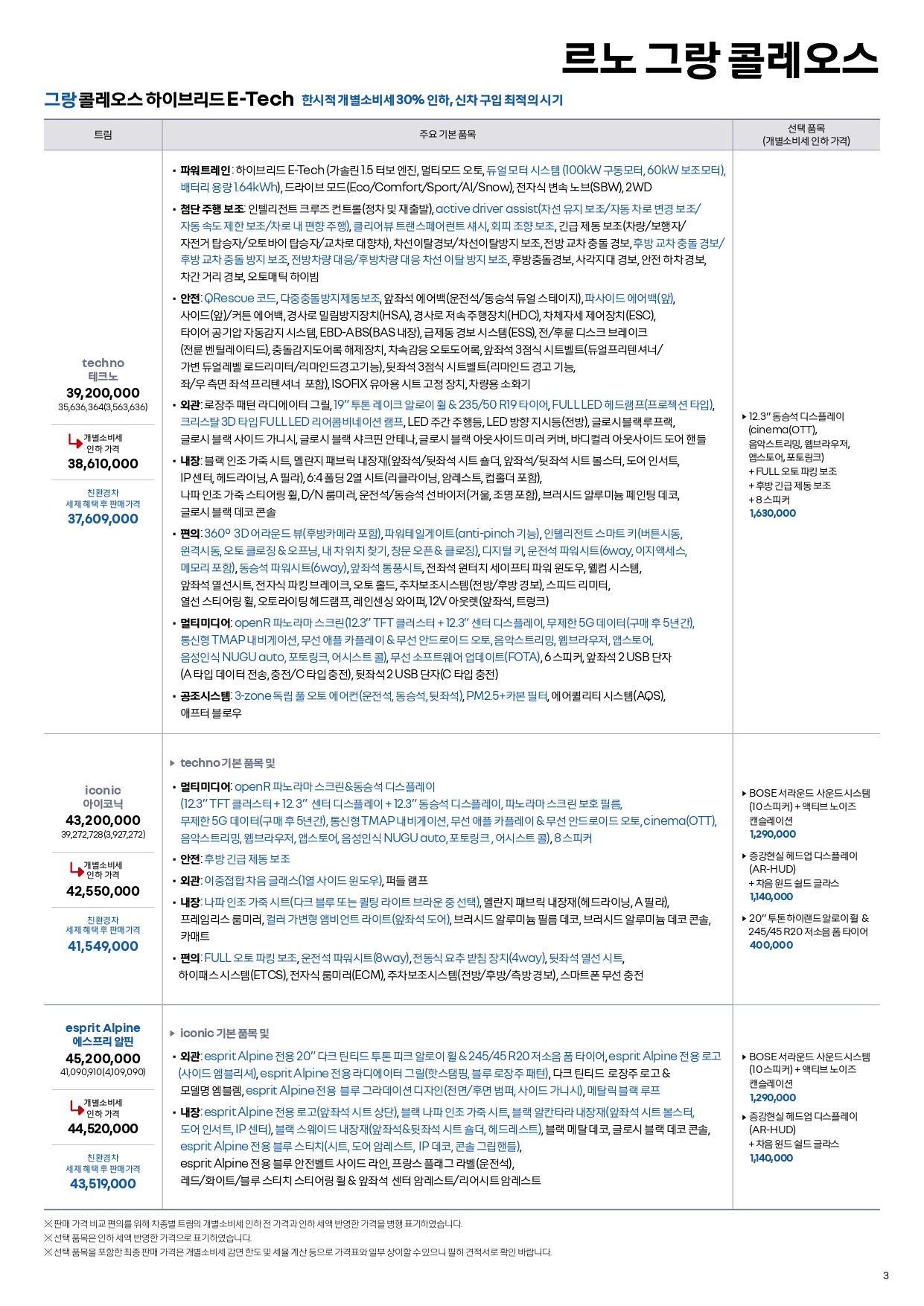 그랑콜레오스 가격표 및 할인