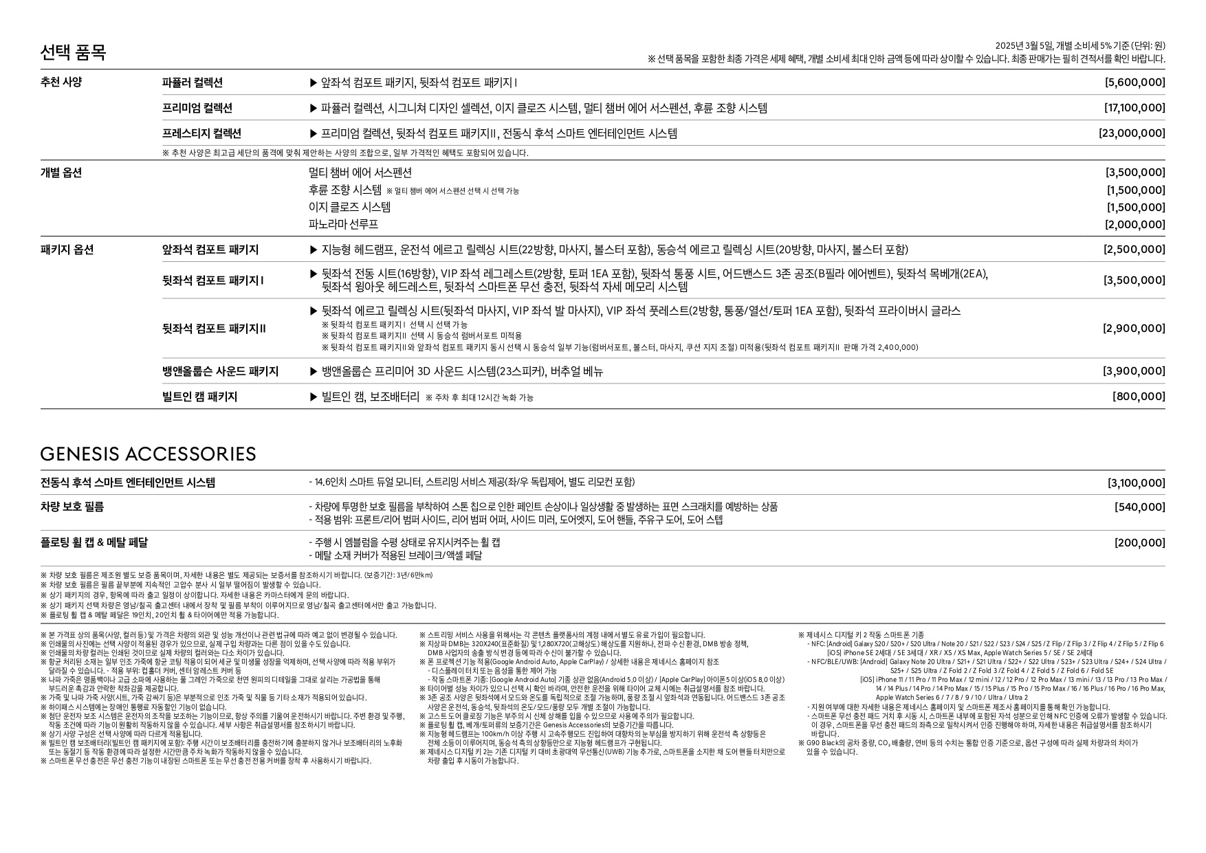 제네시스 라인업은 일반 현대/기아 라인업처럼 파워트레인 별로 가격표를 나뉘는 것이 아닌,