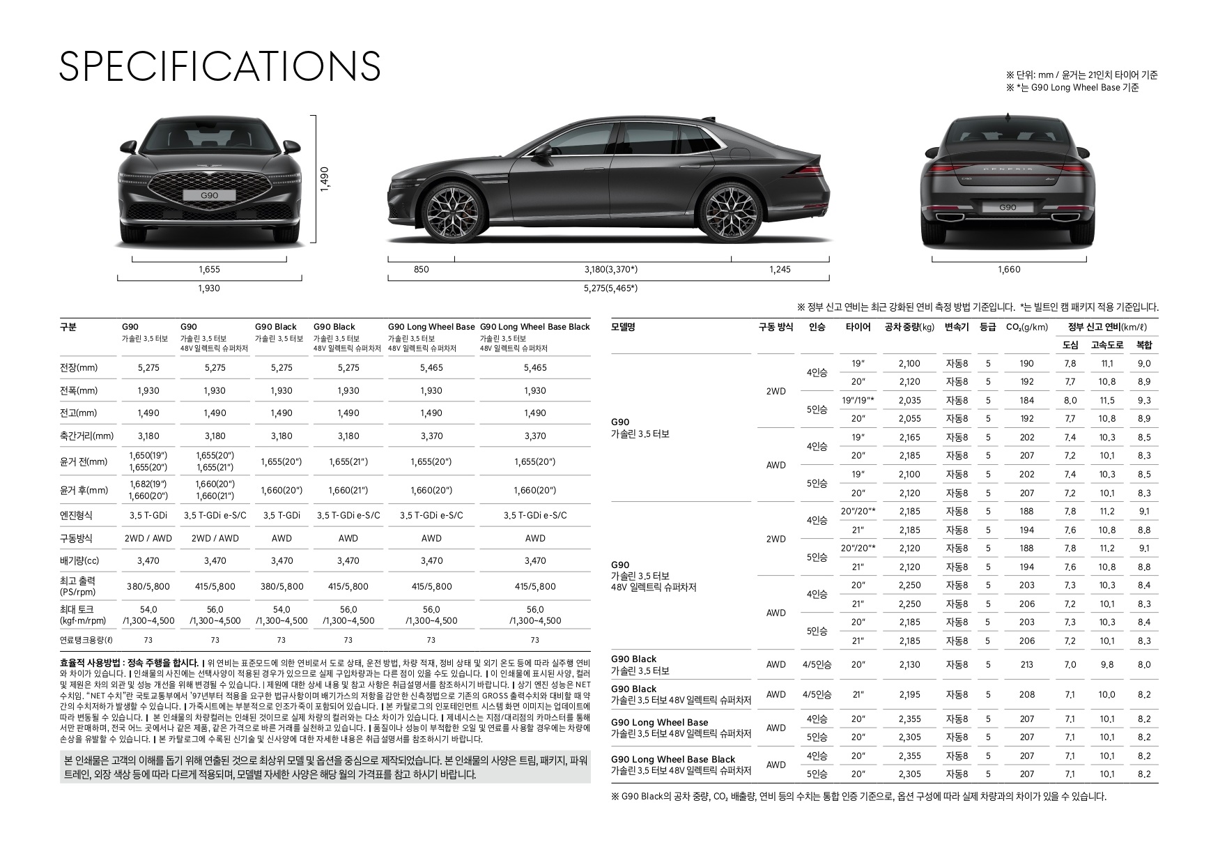 다음으로 G90 제원입니다.
