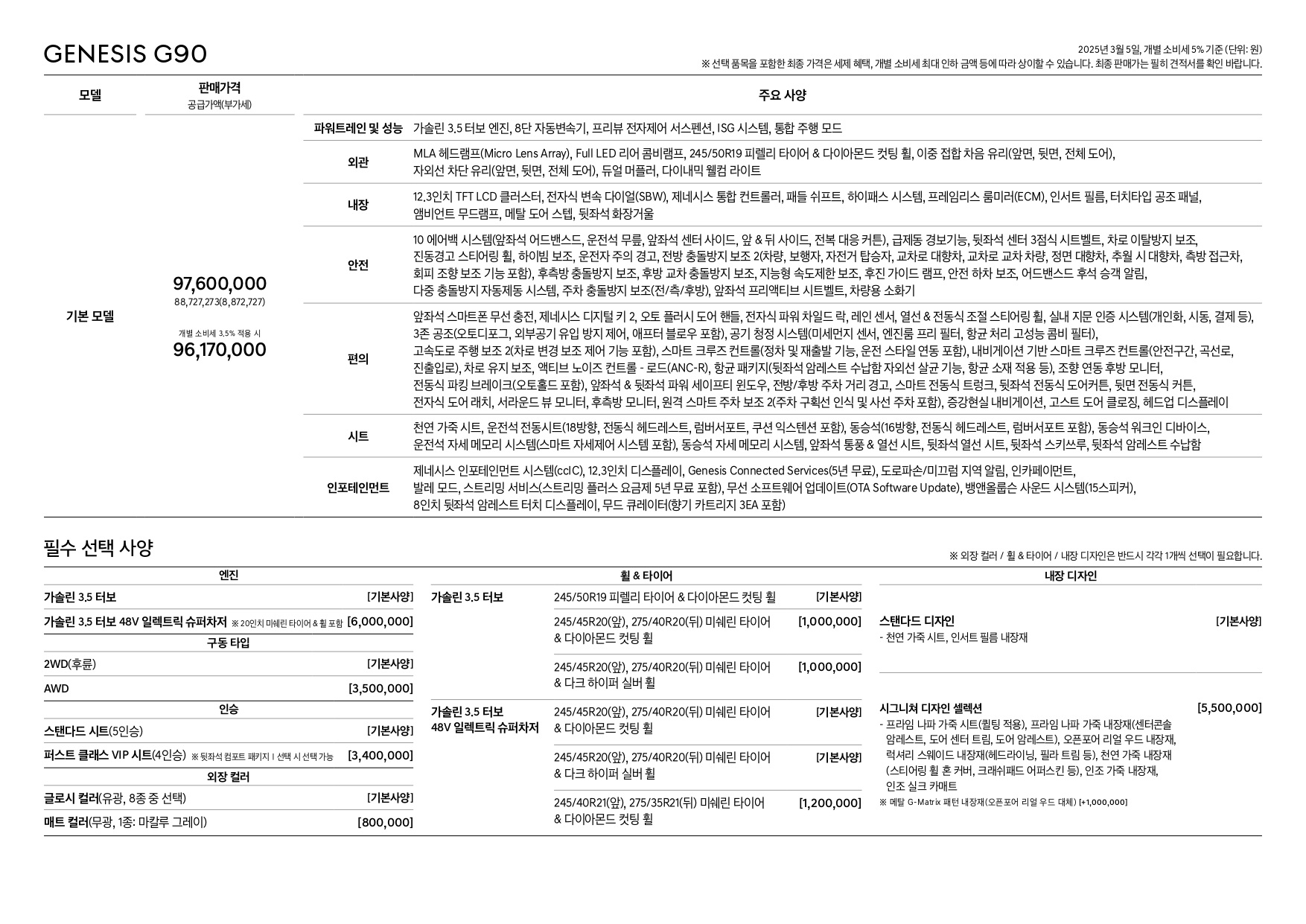 오늘은 여러분들께 2025 제네시스 G90 가격표 및 옵션표를 소개하는 시간을 가져볼까 합니다.